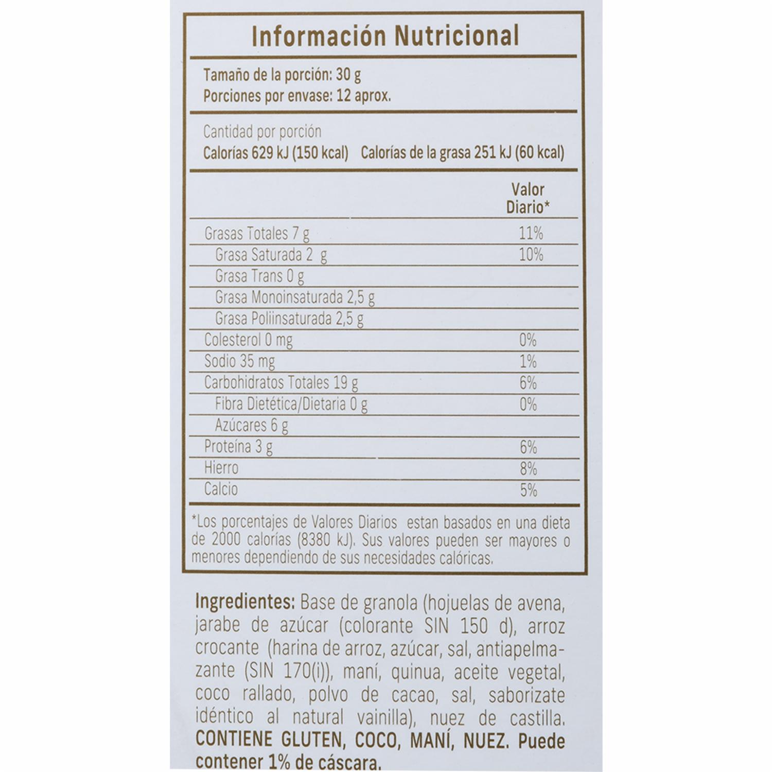 consultando preciosGranola Con Chocolate NATURE´S HEART 350 g – NATURES HEART. Disponible en nuestros locales. Precio y stock pueden variar según la tienda.