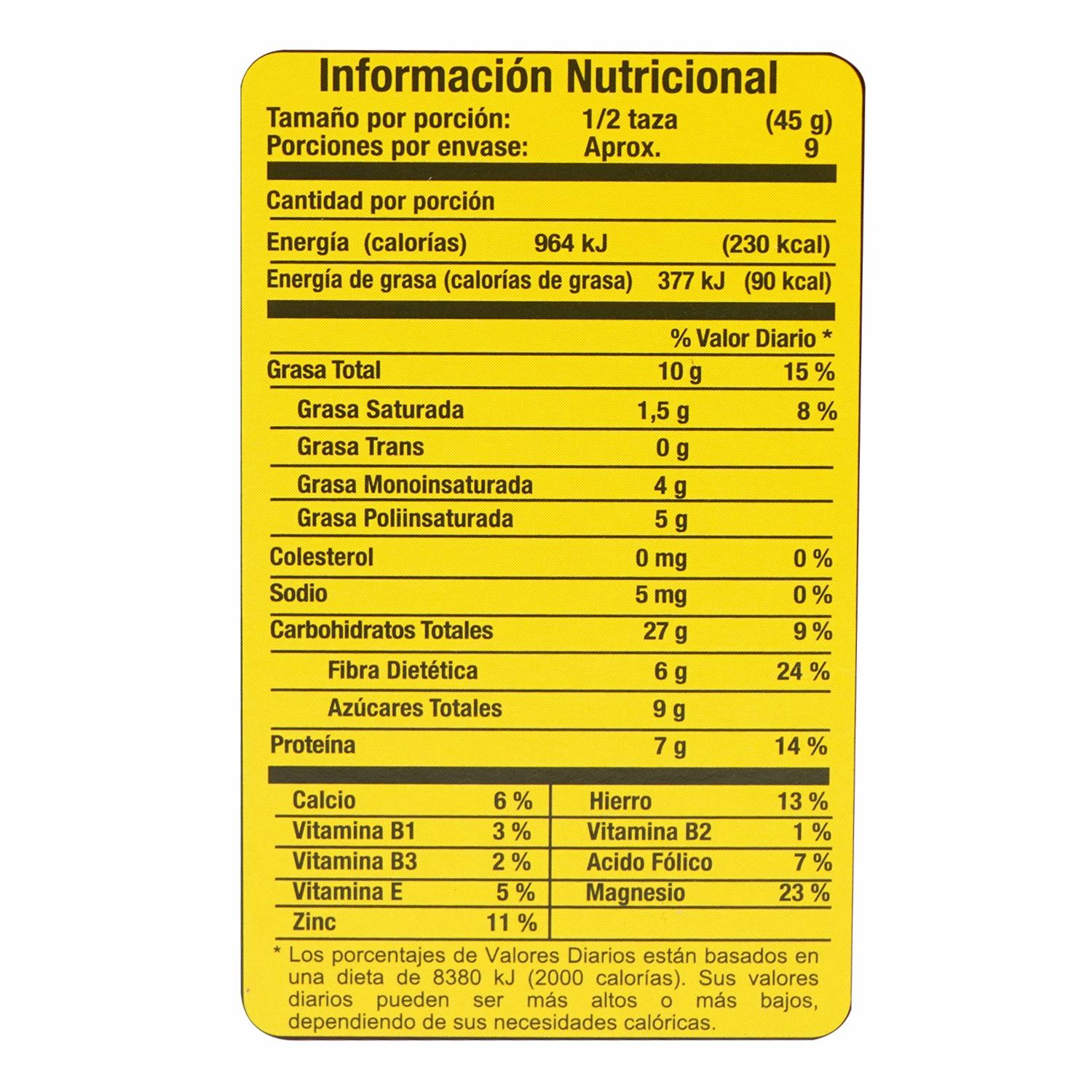 - Certificada como orgánica. - Hecha con ingredientes naturales y de alta calidad. - Libre de conservantes y aditivos artificiales. - Rica en fibra y nutrientes esenciales. - Versátil y fácil de incorporar en la dieta diaria