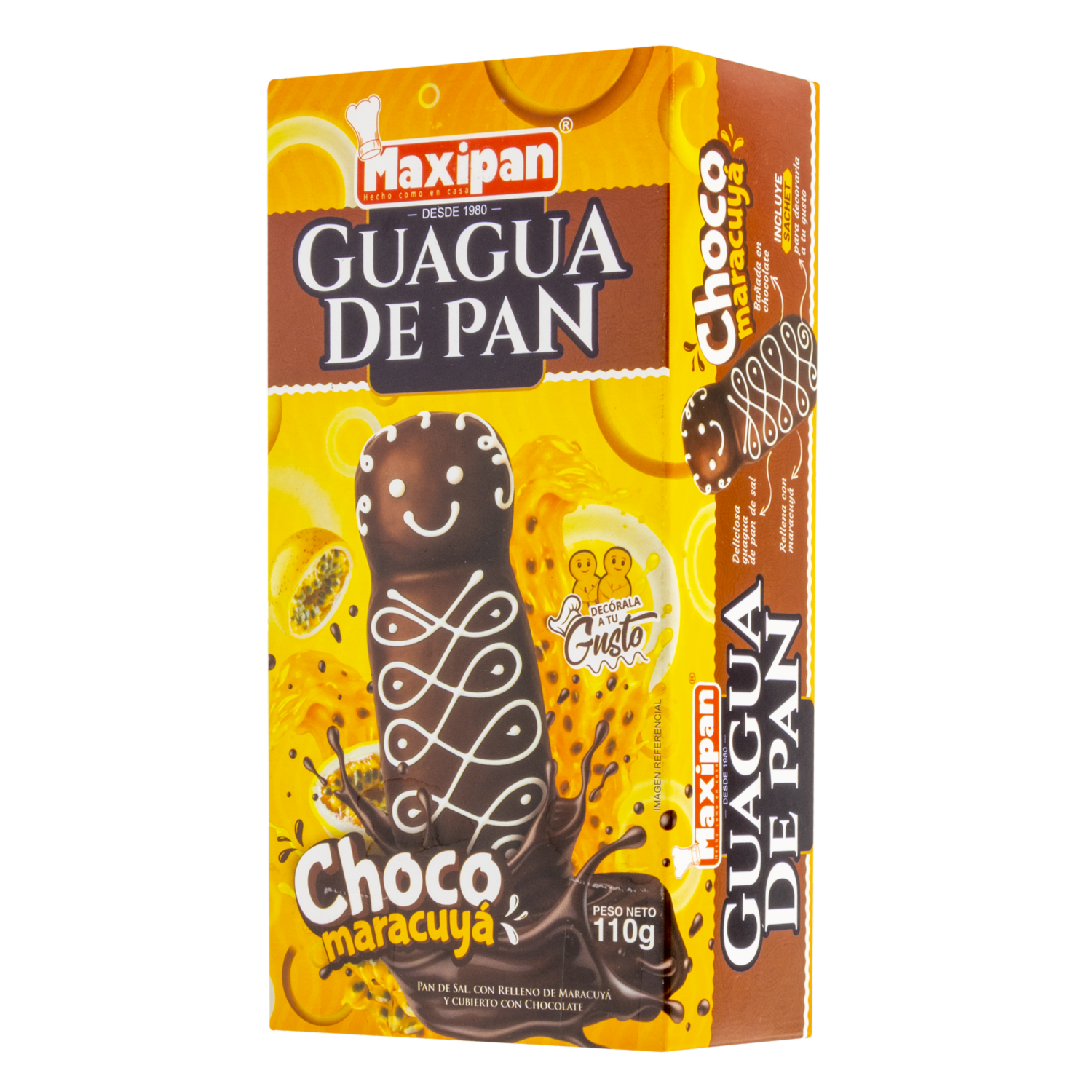 Guagua De Pan Rellena De Maracuyá Y Cobertura De Chocolate MAXIPAN 110 G – MAXIPAN. Disponible en nuestros locales. Precio y stock pueden variar según la tienda.
