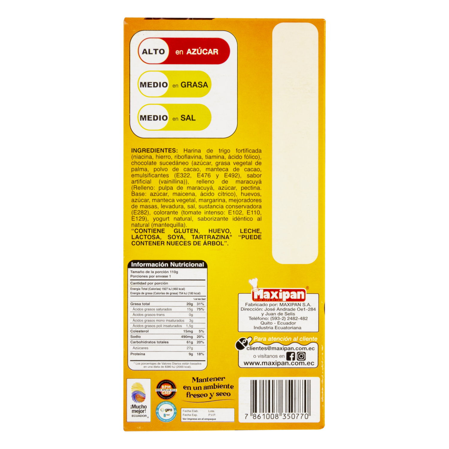 Guagua De Pan Rellena De Maracuyá Y Cobertura De Chocolate MAXIPAN 110 G