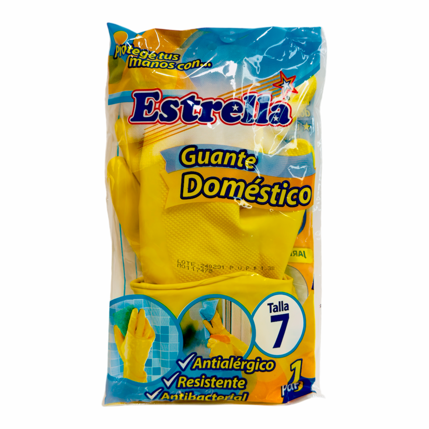 Guantes De Nitrilo Domésticos Amarillos Resistentes Anti alérgico Y Antibacterial ESTRELLA Talla 7