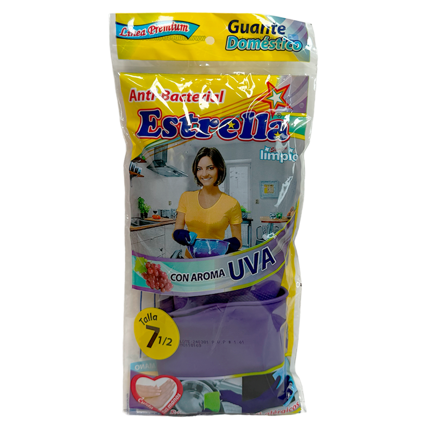 consultando preciosGuantes De Nitrilo Domésticos Antibacterial Aroma A Uva ESTRELLA Talla 7 1/2 – ESTRELLA. Disponible en nuestros locales. Precio y stock pueden variar según la tienda.