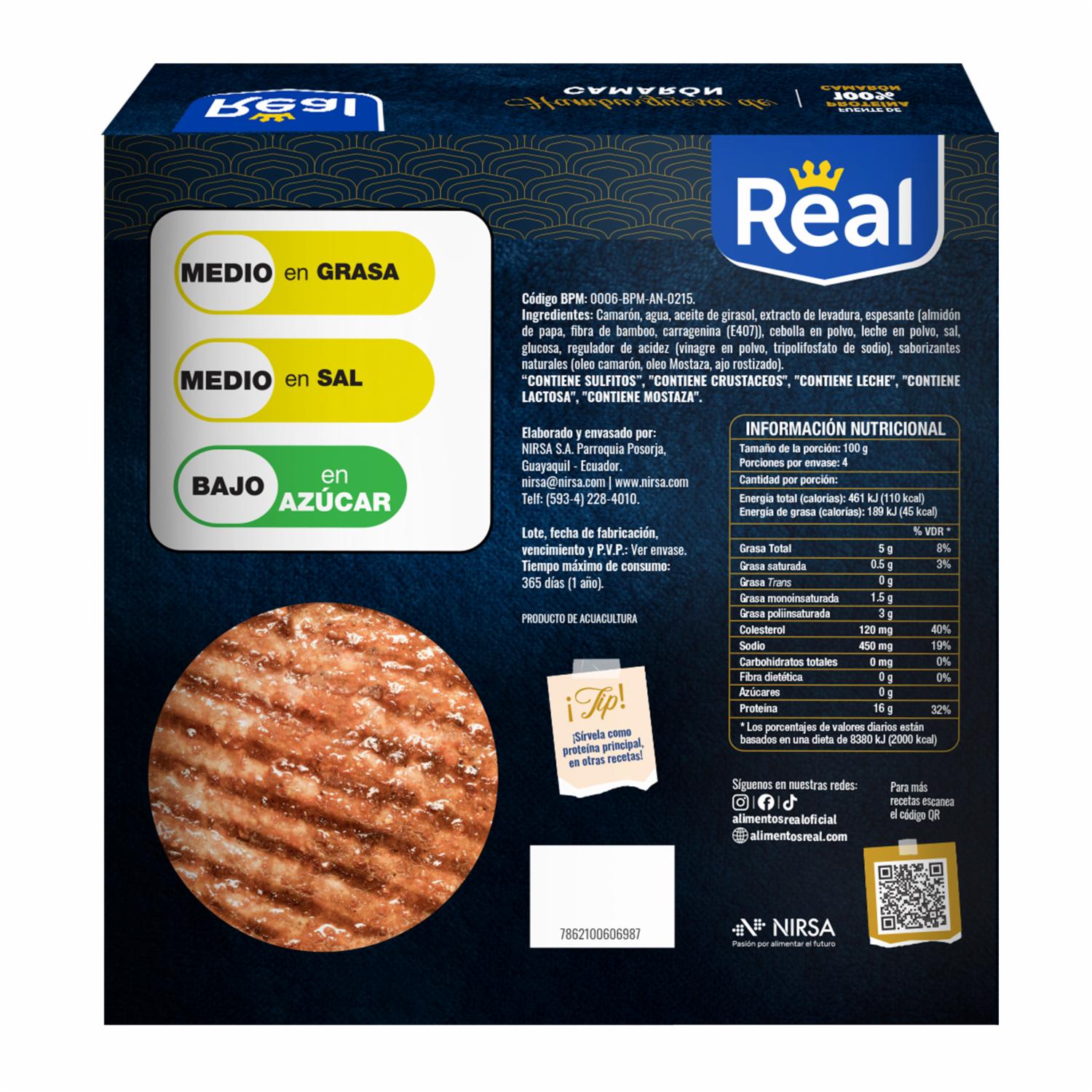 consultando preciosHamburguesa De Camarón REAL 400 G – REAL. Disponible en nuestros locales. Precio y stock pueden variar según la tienda.