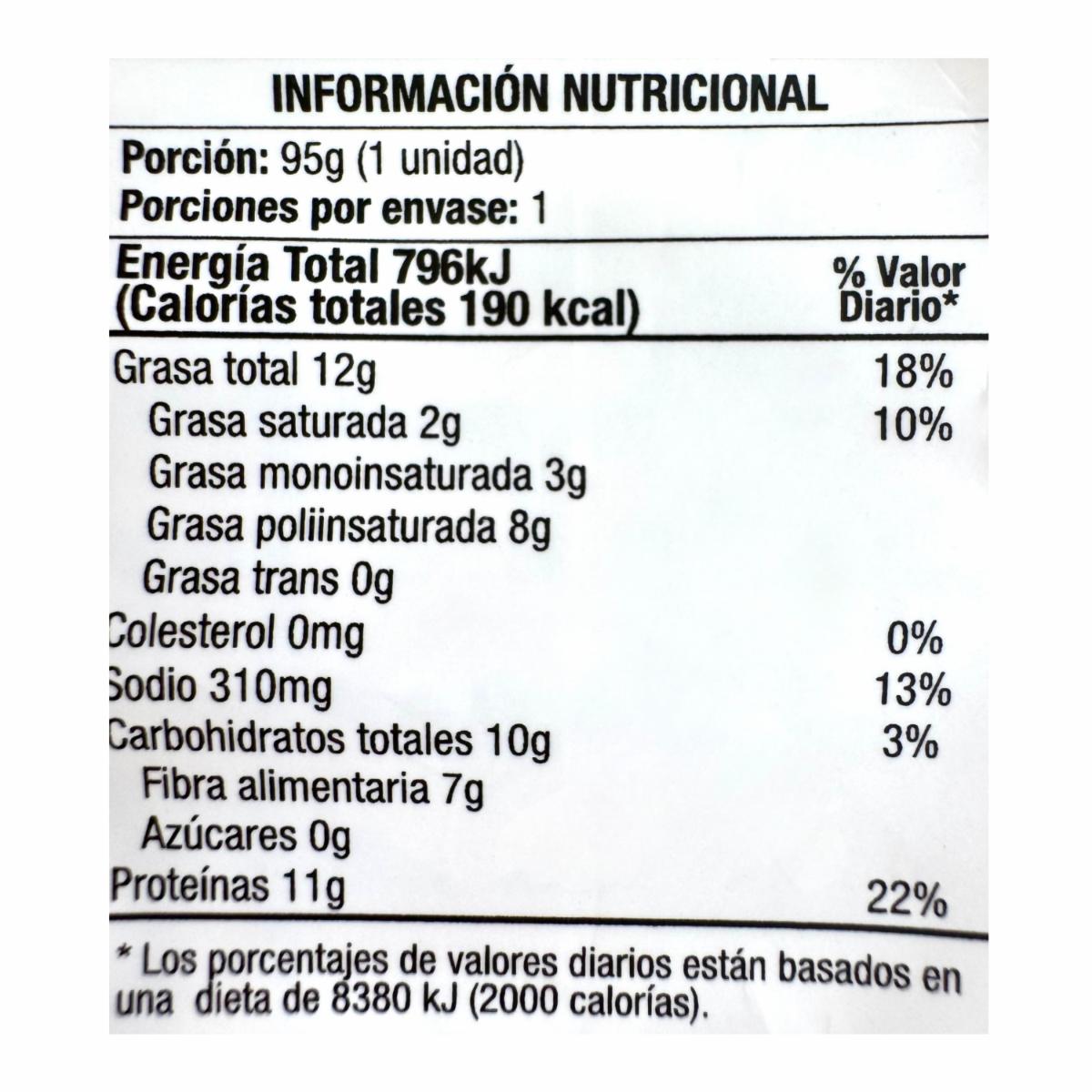 • - Contiene 1 unidad de 95g. - Elaborada a base de plantas. - Excelente fuete de proteínas. - Debe ser cocinado antes de consumirse,- No requiere ser descongelado para su preparación