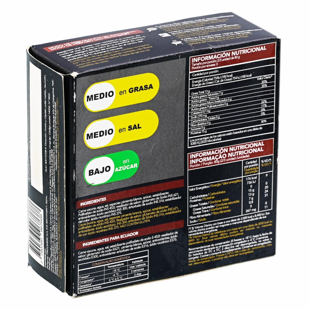 • Estas hamburguesas están hechas de carne de res picada y moldeada en forma de disco, luego son congeladas para preservar su frescura y sabor