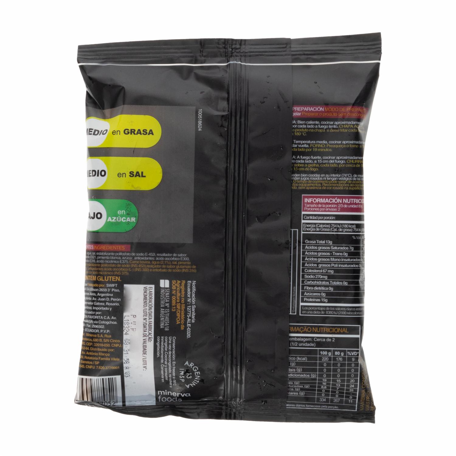 - Hamburguesa de carne vacuna supercongelada. Libre de Gluten. Sin TACC