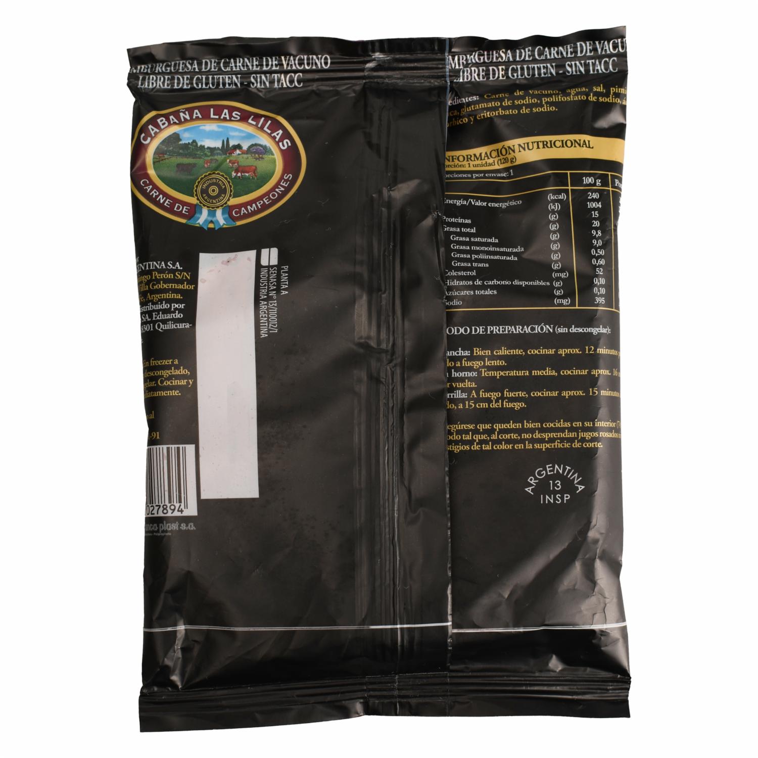 Hamburguesas Libre De Gluten CABAÑA LAS LILAS 120 G – CABAÑA LAS LILAS. Disponible en nuestros locales. Precio y stock pueden variar según la tienda.