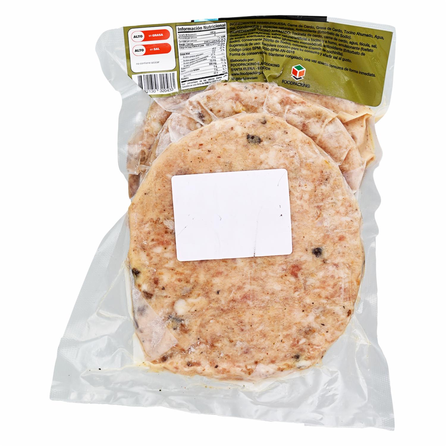 Hamburguesas matambre con tocino, una combinación perfecta de carne jugosa y tocino, creando un sabor intenso y delicioso. Preparadas con ingredientes de calidad, estas hamburguesas ofrecen una experiencia gourmet en cada bocado. Ideales para disfrutar en parrilladas, cenas o como un delicioso almuerzo