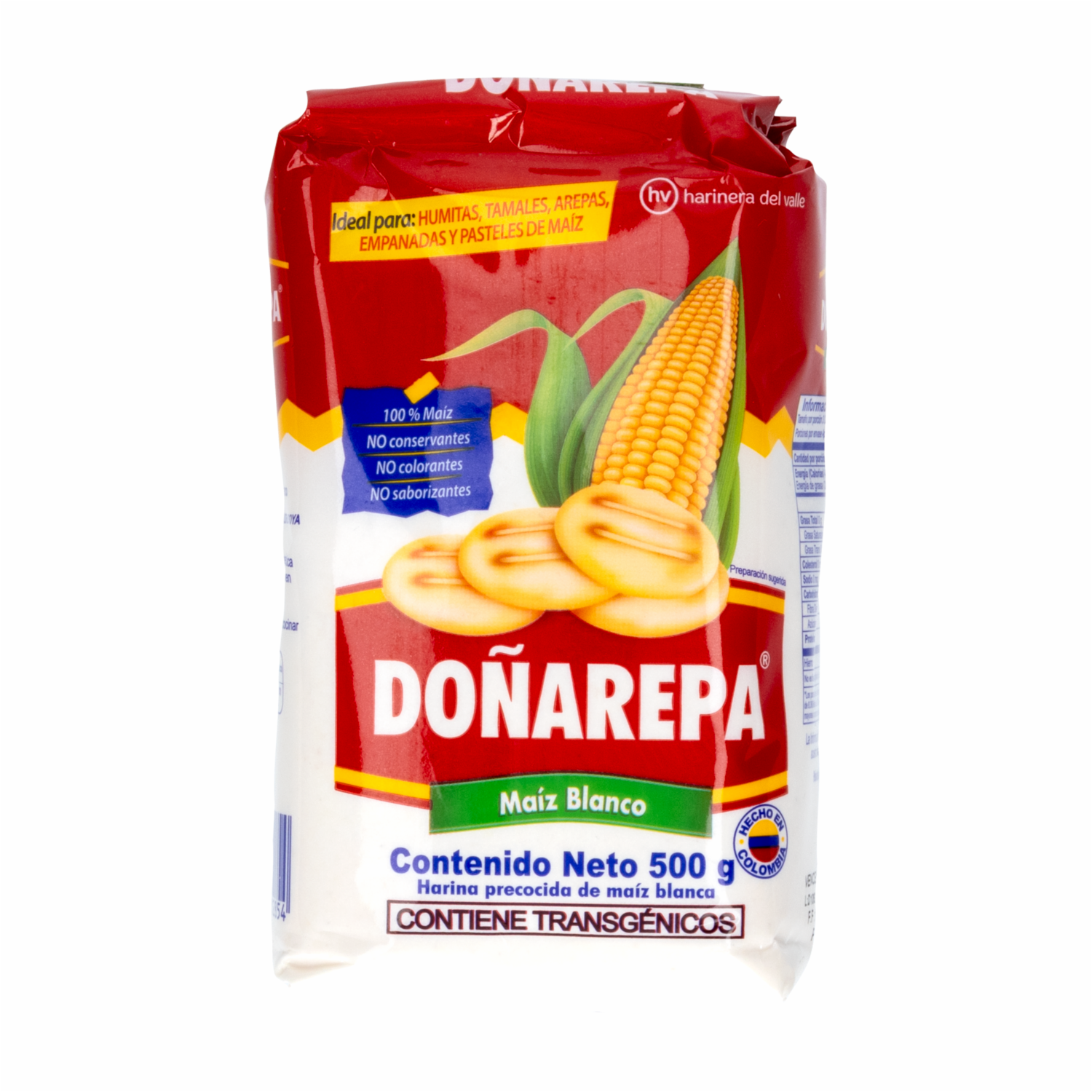 - Harina precocida de maíz natural con verdadero sabor 100% colombiano y 100% maíz, tiene excelente desempeño en las preparaciones y en el proceso de armar, asar o freír, no aporta grasa