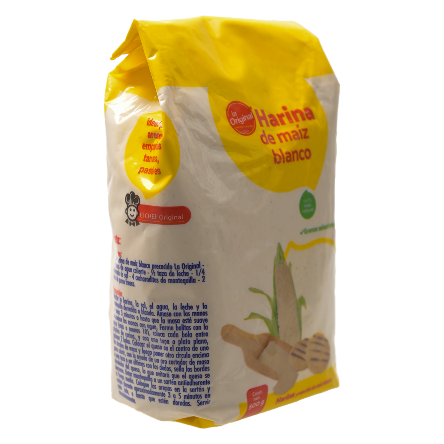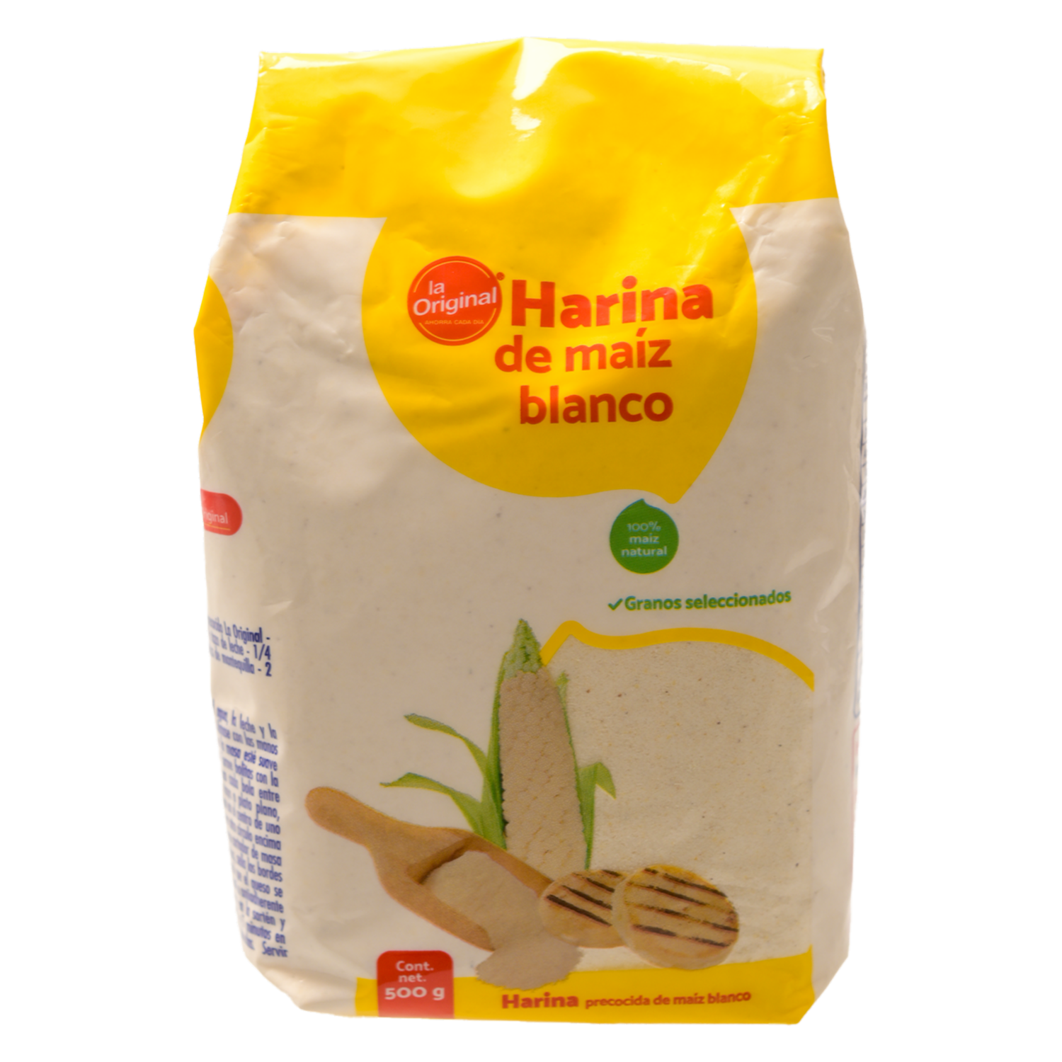 - Prepara tus recetas favoritas con la harina de maíz blanco LA ORIGINAL, en práctica presentación de 500 g. Ideal para tortillas, arepas y más, ofrece una textura fina y sabor auténtico. Perfecta para cocinar con tradición y darle a tus platos ese toque casero irresistible