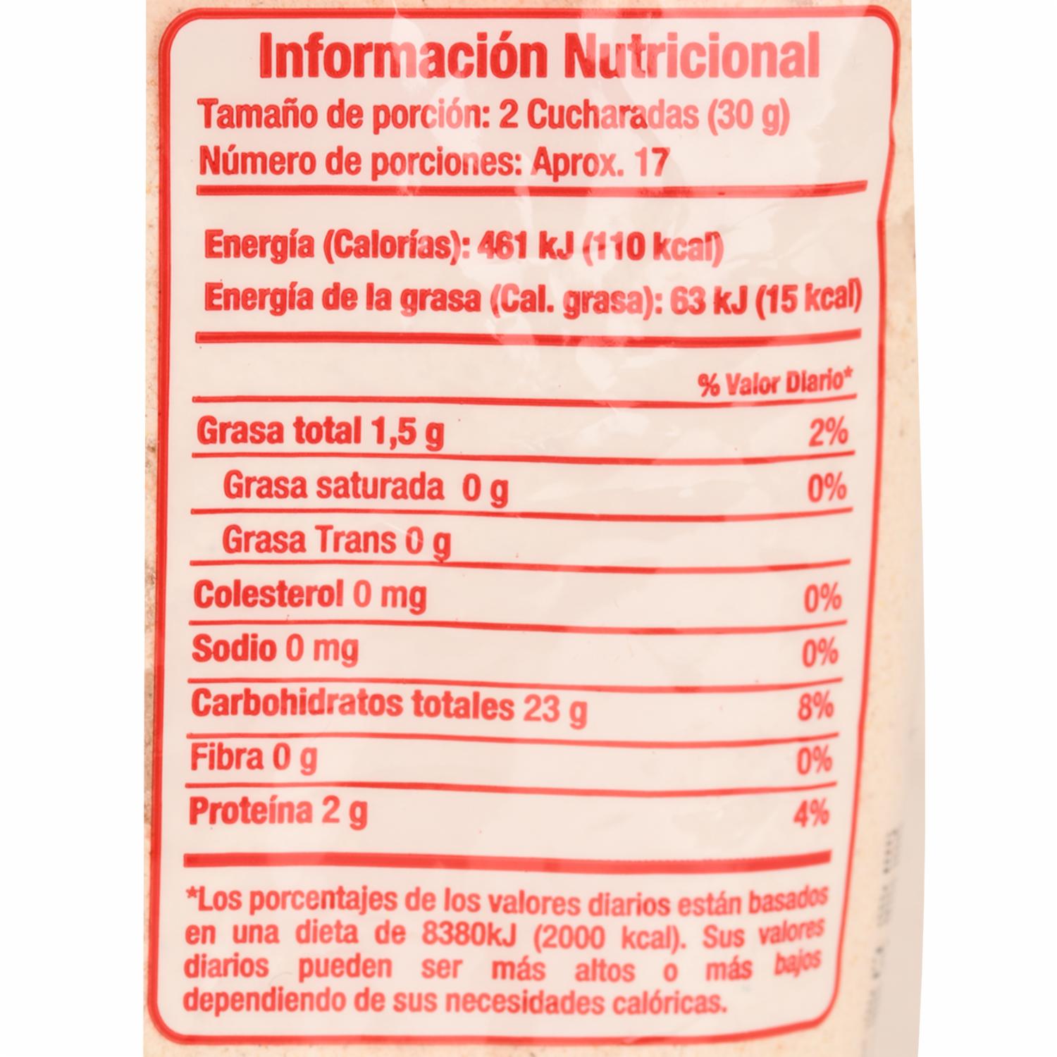 - Harina de maíz de granos seleccionados y molidos