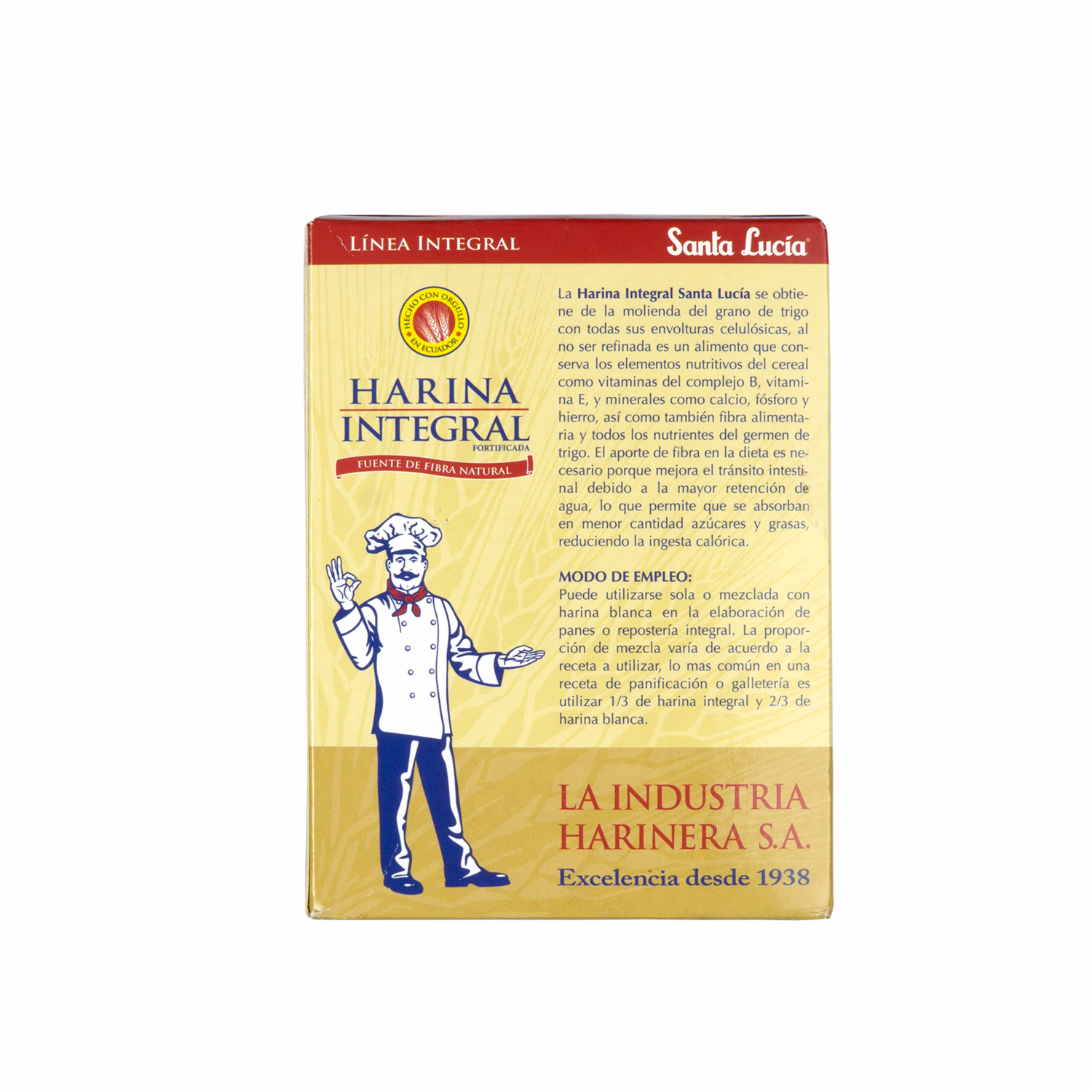 - La Harina Santa Lucía Integral sin Polvo de Hornear es una harina pastelera elaborada a base de trigo de alta calidad