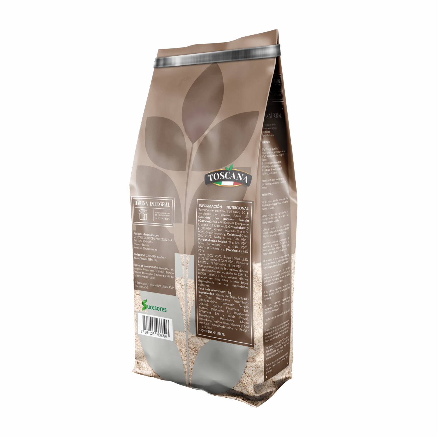 - Harina elaborada con trigos de alta proteína, contiene todos los contituyentes del grano de trigo entero, excelente sabor en el producto final