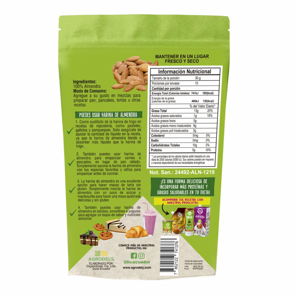- Harina De Alnedra Liv Sin Piel Pura, Funda Doy Pack Ideal Para Preparar Cualquier Tipo De Masa O Postres
