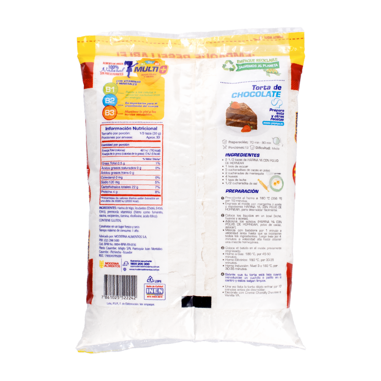- Harina de trigo instantánea autoleudable fortificada con polvo de hornear sin preservantes