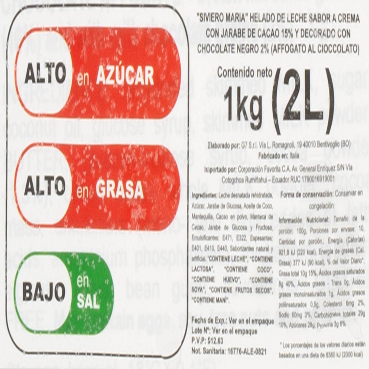 Helado Affogato Sabor A Chocolate SIVIERO MARIA 2000 ML
