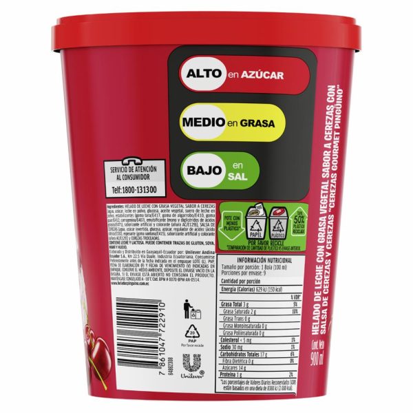 Helado Cereza Gourmet PINGÜINO 900 Ml