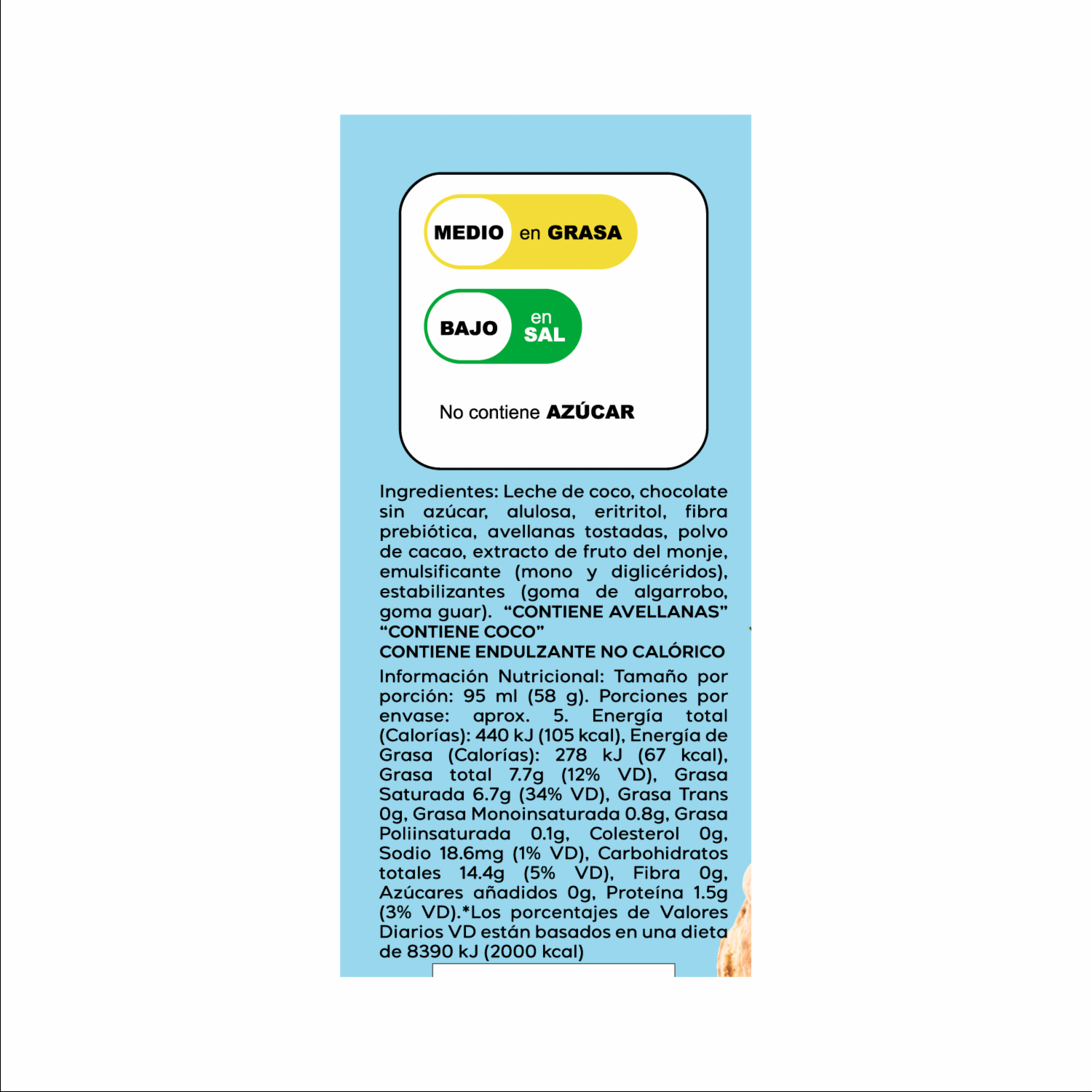 - Sin azúcar añadida, Sin lácteos, hecho con leche de coco natural