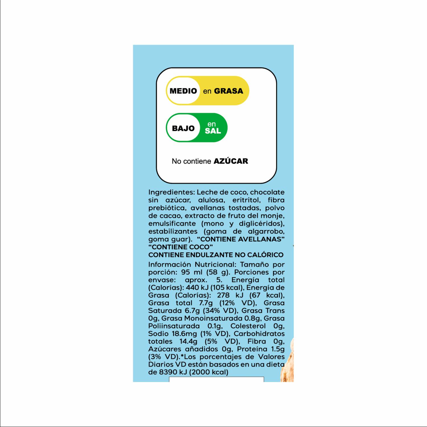 • Sin azúcar añadida, Sin lácteos, hecho con leche de coco natural