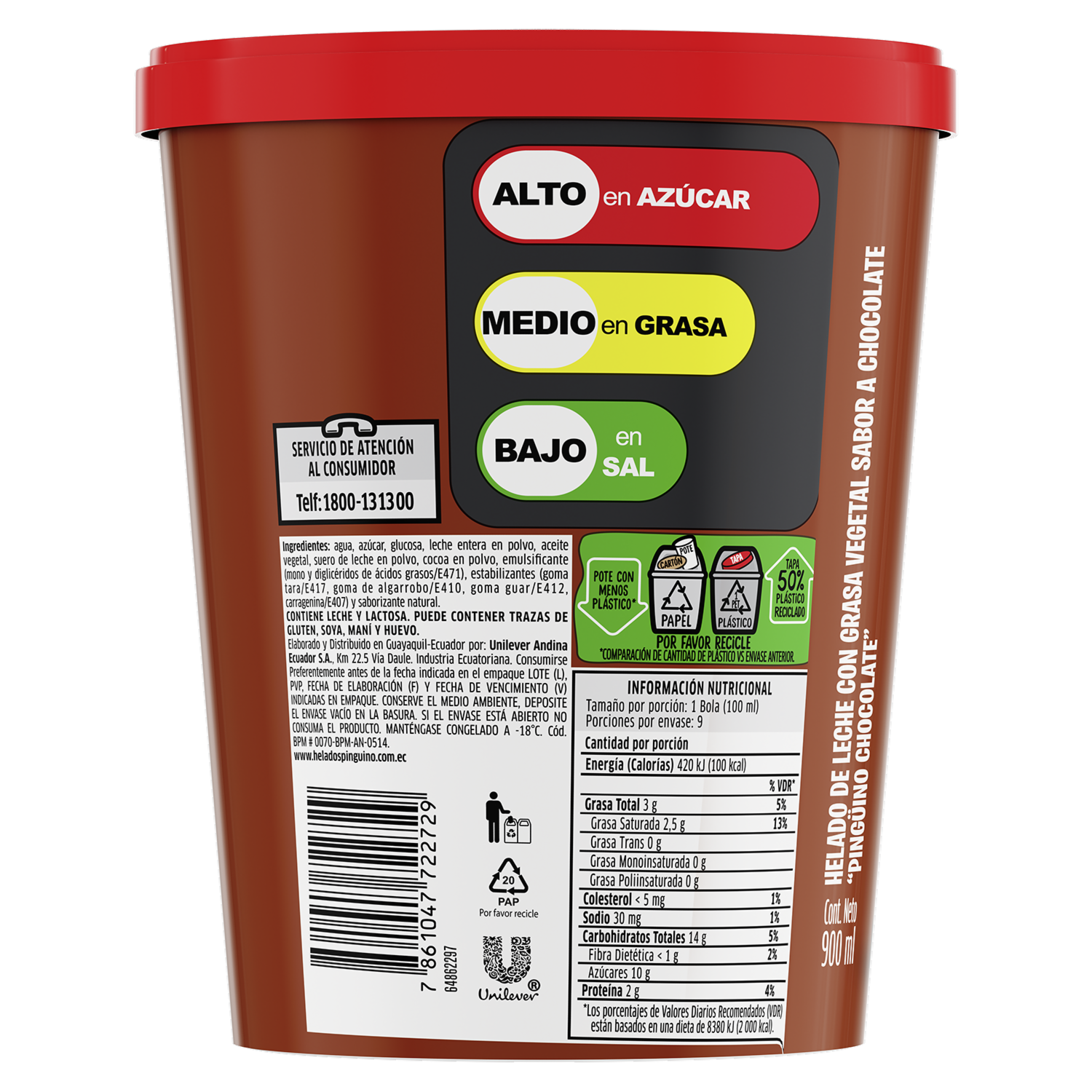 - ¿Ganas de un chocolate? Qué mejor que un Pingüino Cremossito Chocolate de 900ML con 70% leche para compartir en familia. ¡Irresistible!