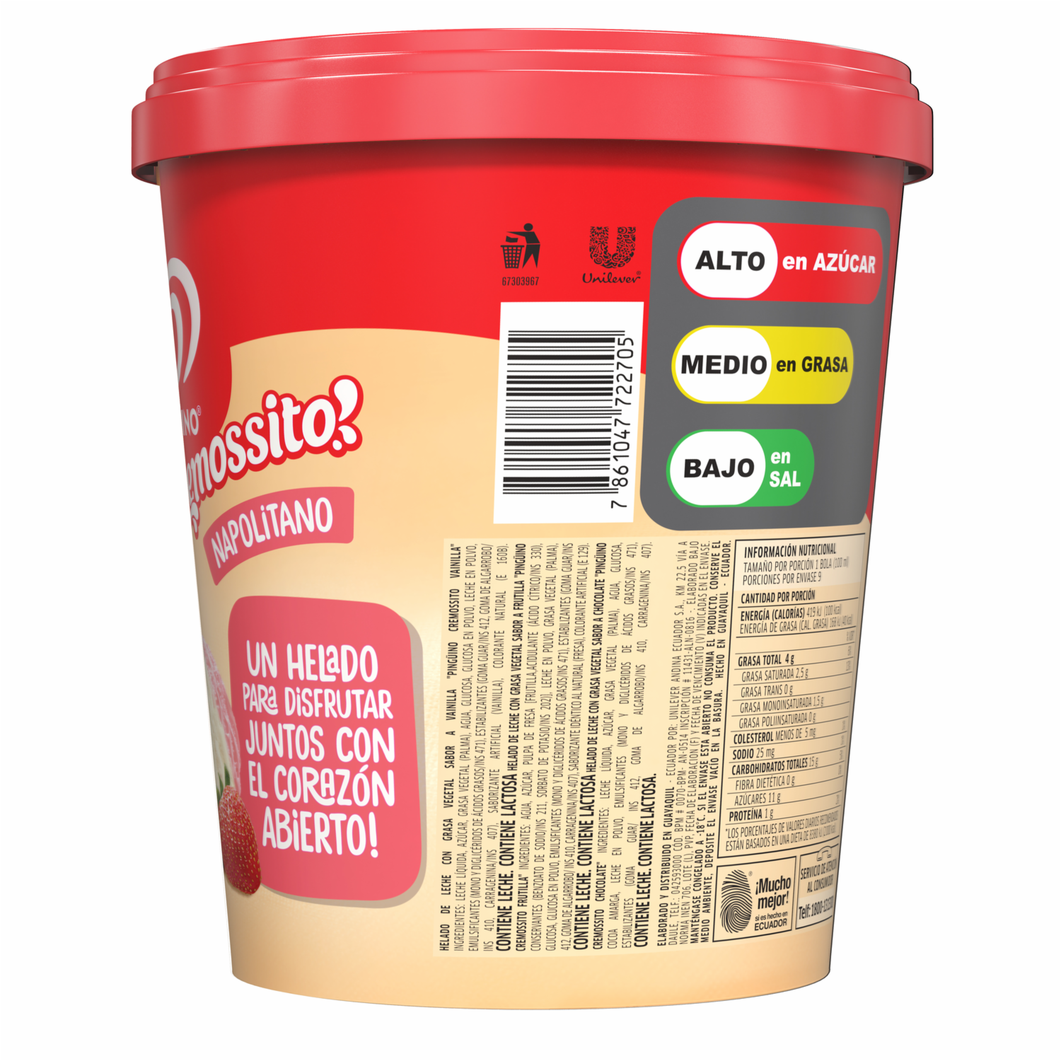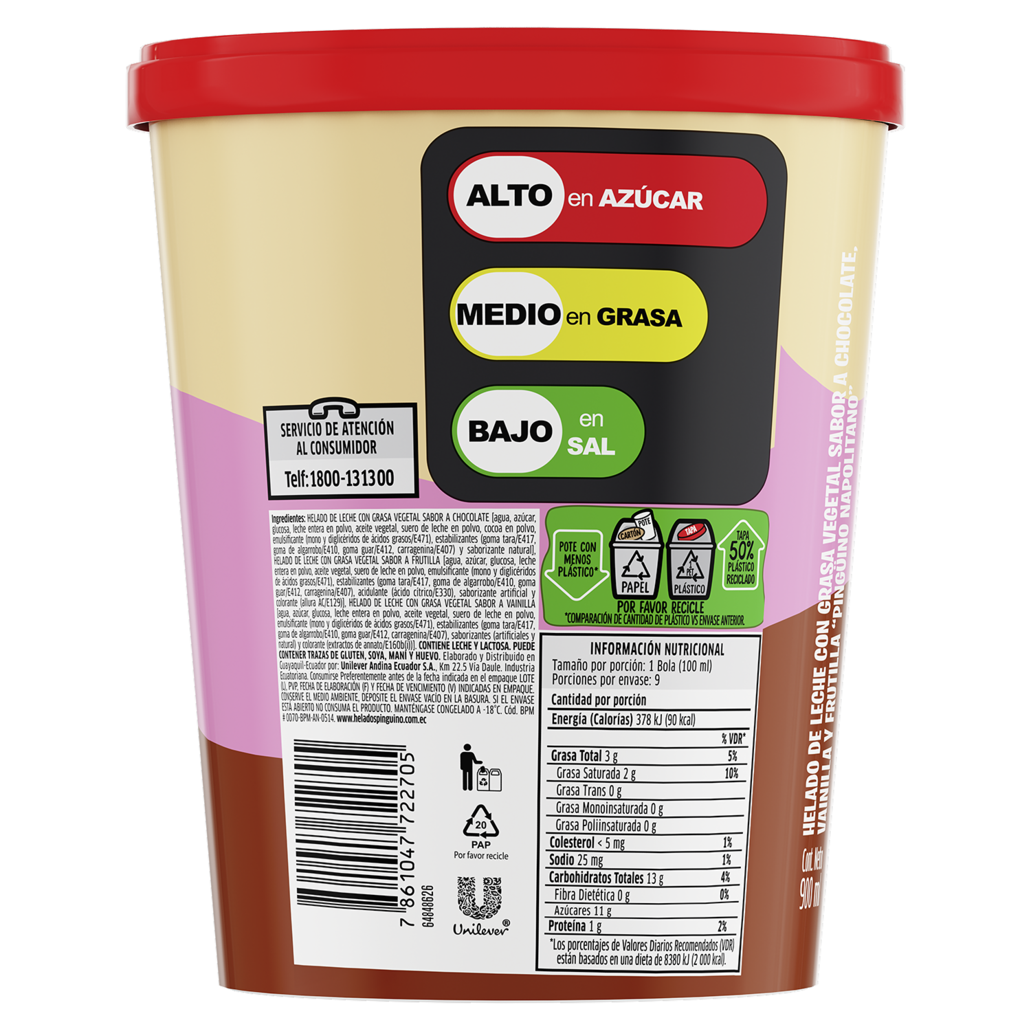 Helado Cremossito Napolitano PINGÜINO 900 Ml
