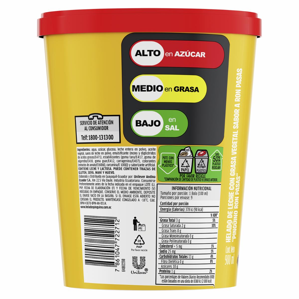 - Sírvete algo delicioso y llénate de felicidad con el Helado Pingüino Ron Pasas de 900ml. ¡El sabor que les gusta a todos!