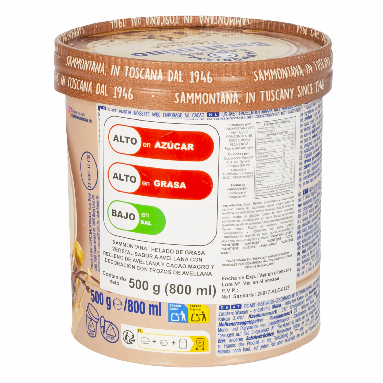 Helado De Avellana Y Chocolate Barattolino SAMMONTANA 500 G