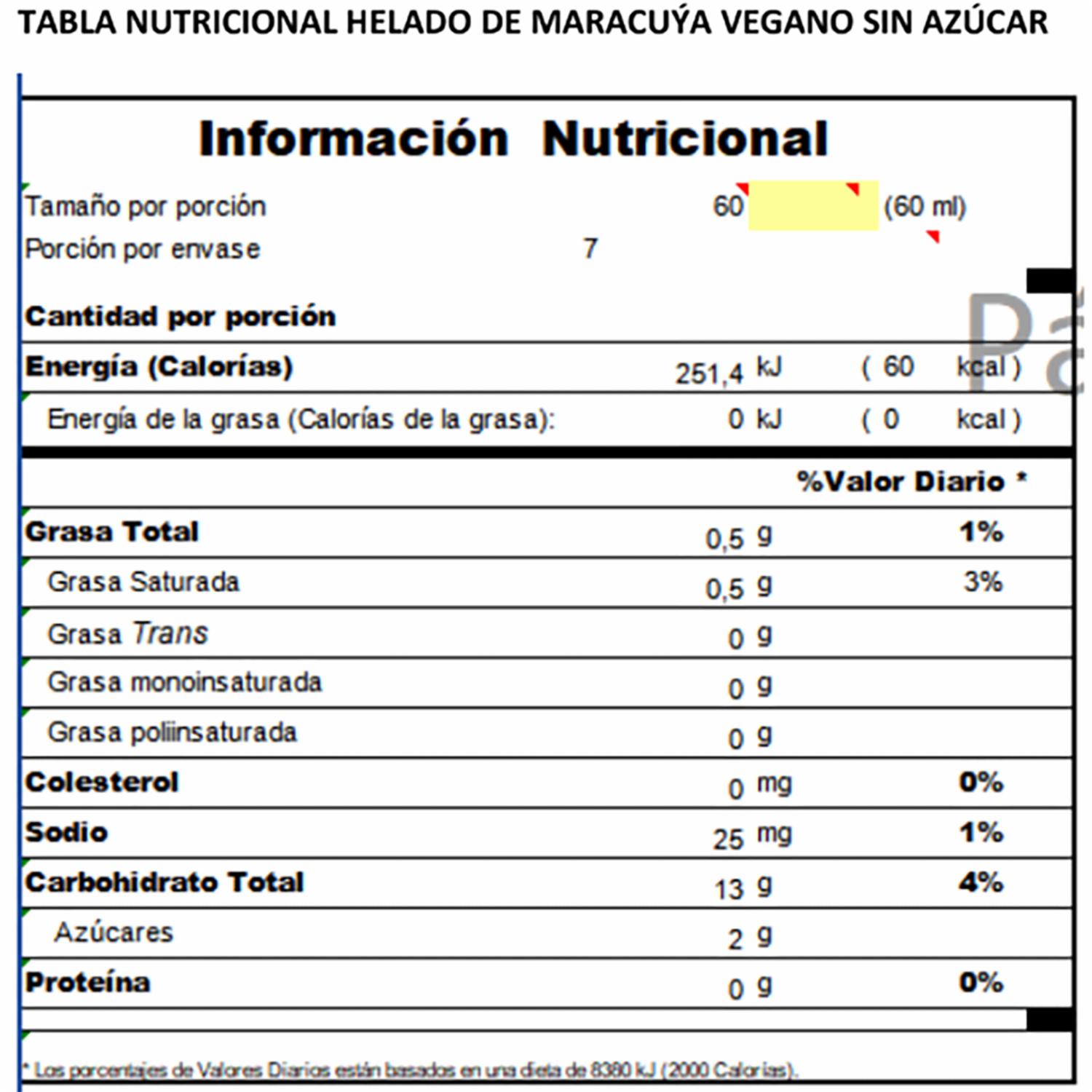 Helado De Maracuyá Sin Azúcar PACCARI 450 G