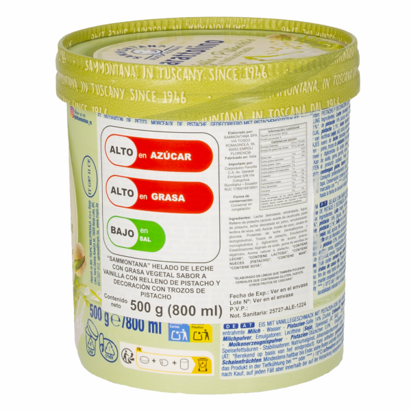 Helado De Vainilla Y Pistacho Barattolino SAMMONTANA 500 G