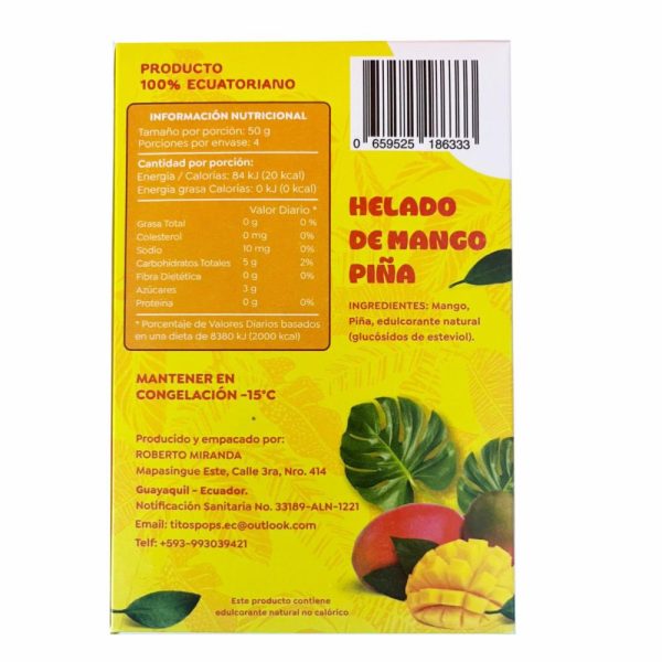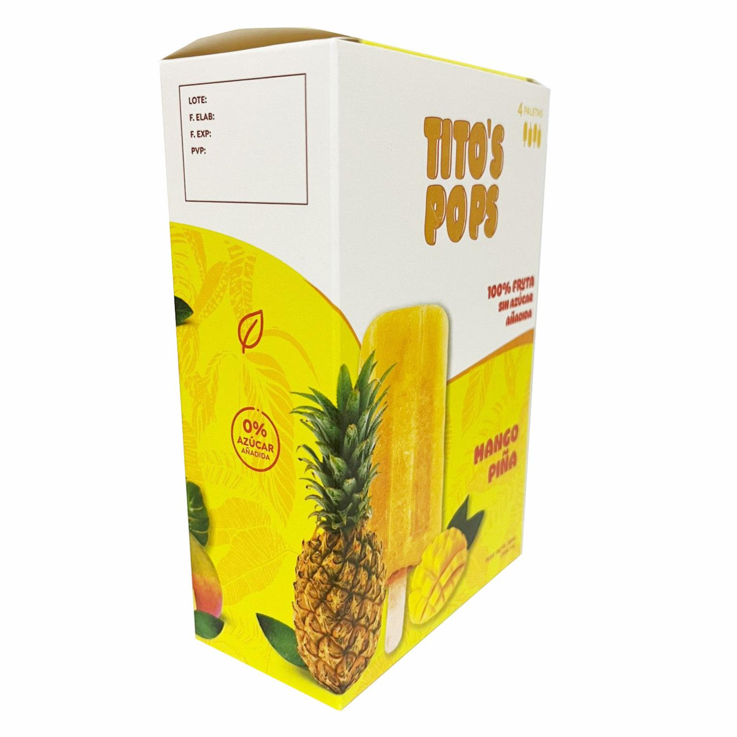 Helado En Paleta 100% Mango Piña Sin Azúcar TITO´S POPS 4 Uds X 50 G