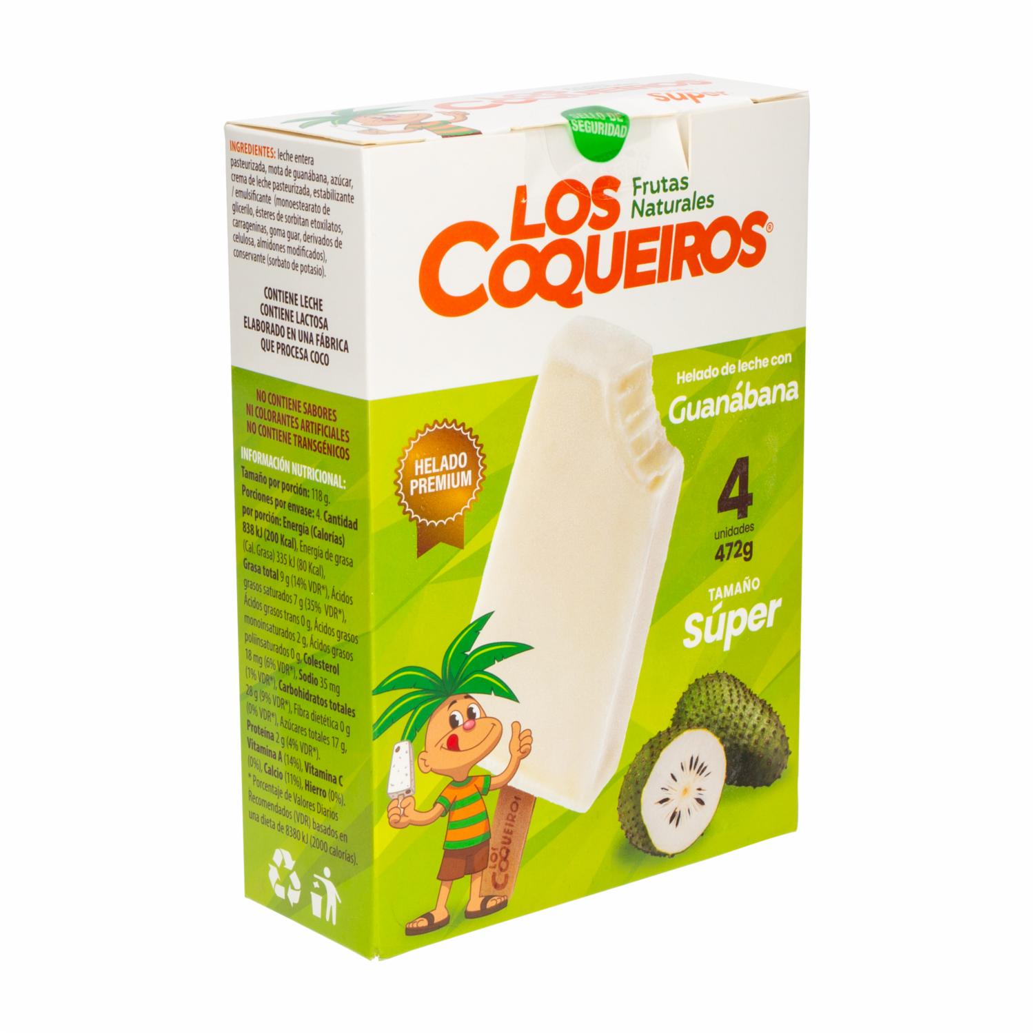 Helado Guanabana LOS COQUEIROS 4 X 118 G – LOS COQUEIROS. Disponible en nuestros locales. Precio y stock pueden variar según la tienda.