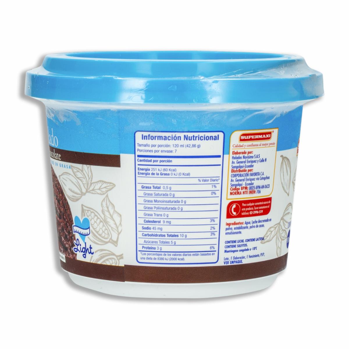 Helado Light Chocolate SUPERMAXI 900 Ml – SUPERMAXI. Disponible en nuestros locales. Precio y stock pueden variar según la tienda.