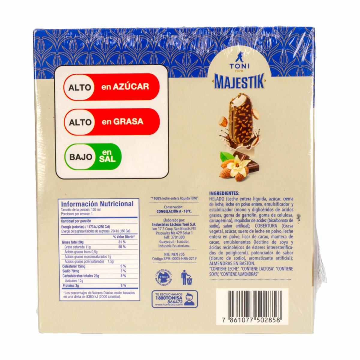 Helado Majestik Vainilla Cubierto De Chocolate Y Almendras TONI 4 X 105 Ml