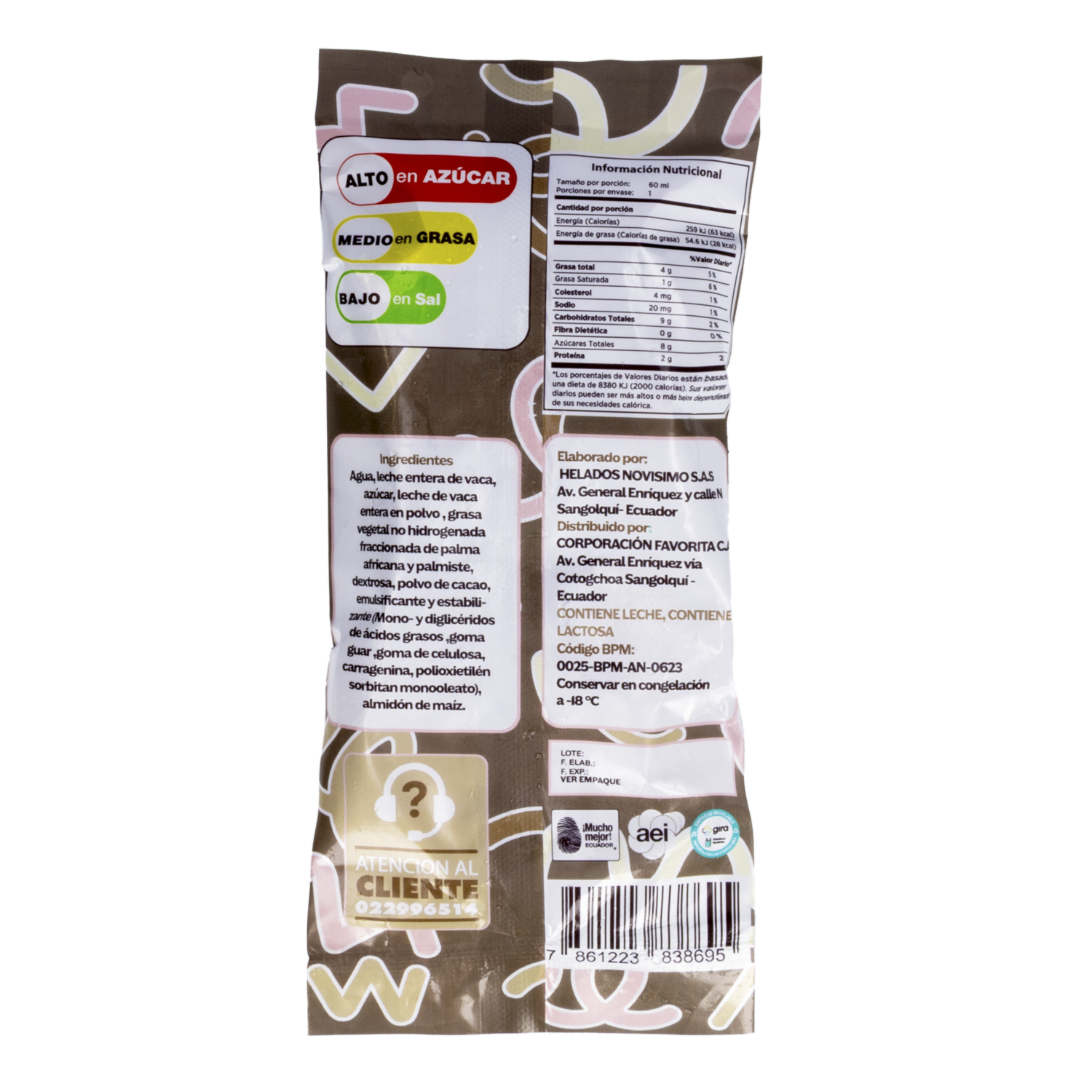 Helado Paleta Sabor A Chocolate EL ARTESANAL 60 G