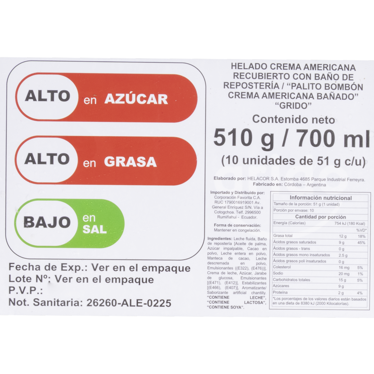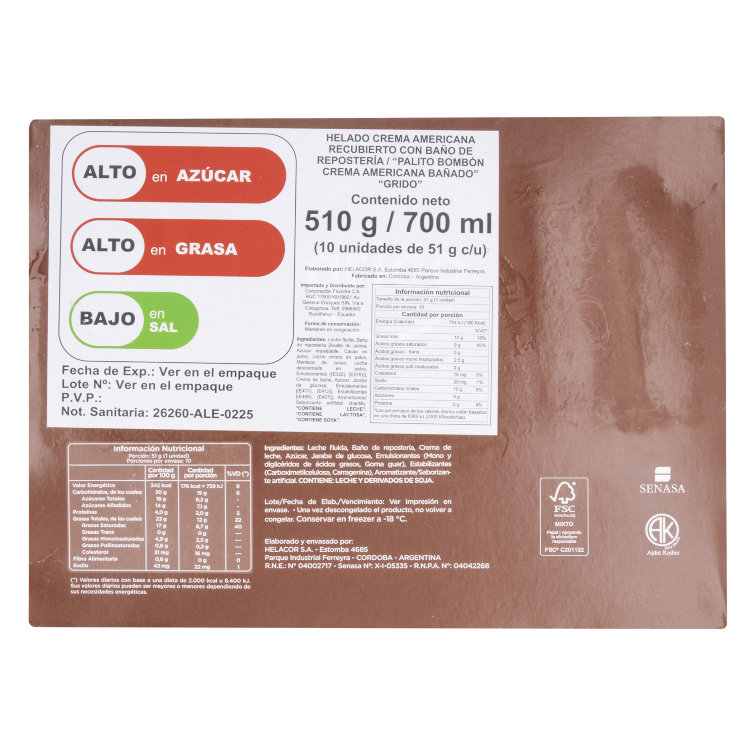 consultando preciosHelado Palito Bombon GRIDO 10 X 51 G – GRIDO. Disponible en nuestros locales. Precio y stock pueden variar según la tienda.