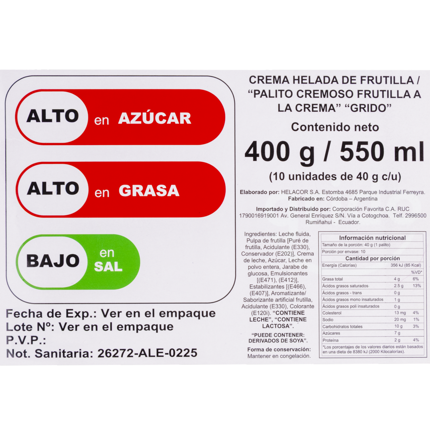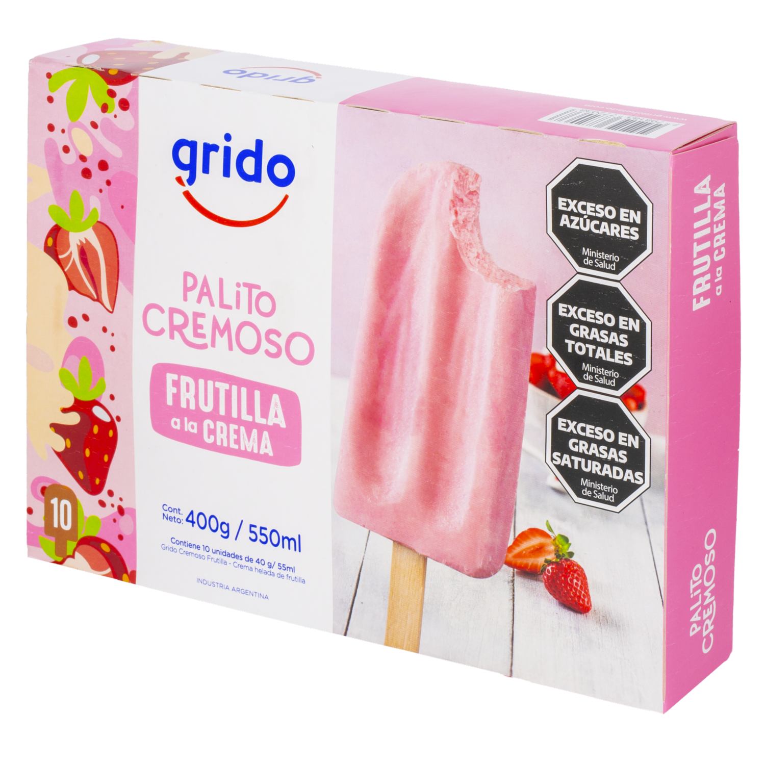 Helado Palito Cremoso Sabor Frutilla A La Crema GRIDO 10 X 40 G