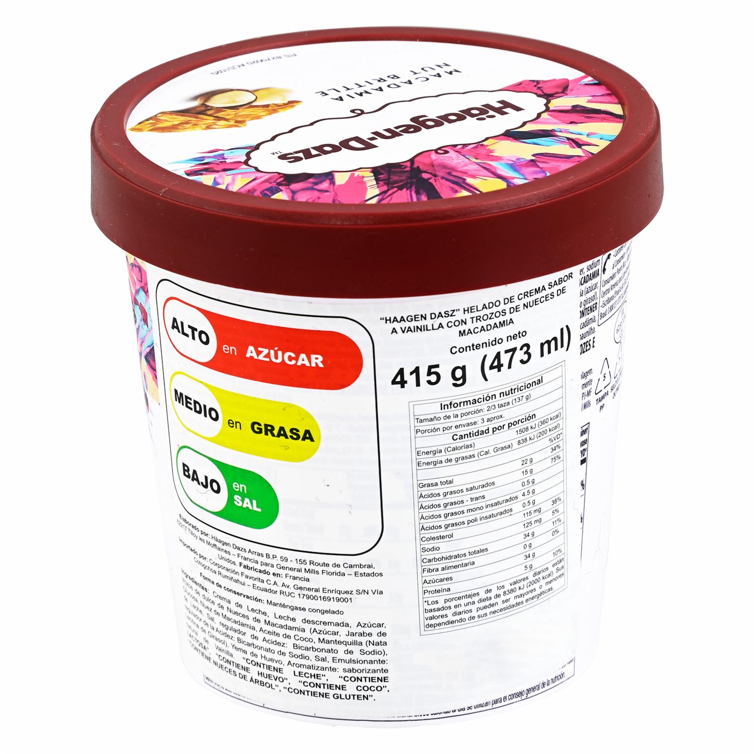 Helado Sabor A Vainilla Con Macadamia HÄAGEN-DAZS 473 ml