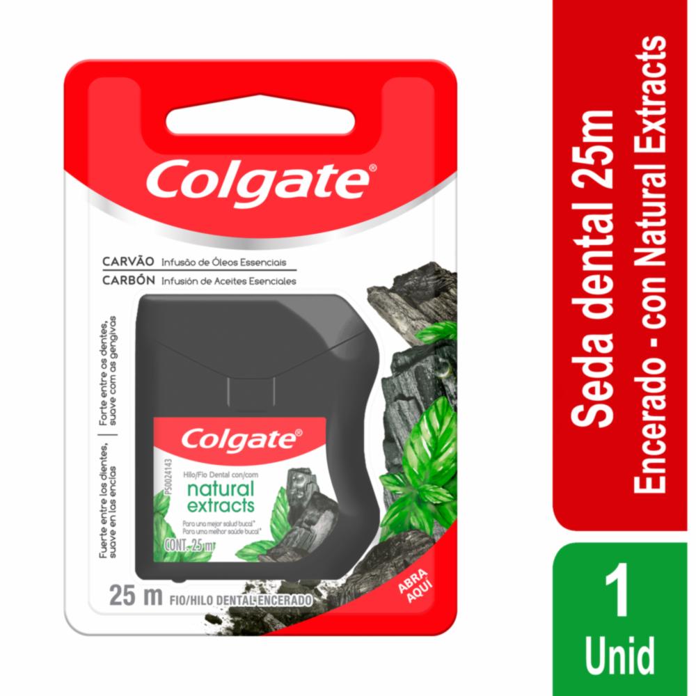 • La Seda dental Colgate Natural Extracts Carbón, con una fórmula innovadora de infusión de aceites esenciales, proporciona una limpieza interdental eficaz, que ayuda a prevenir problemas gingivales, removiendo las bacterias que se alojan entre los dientes