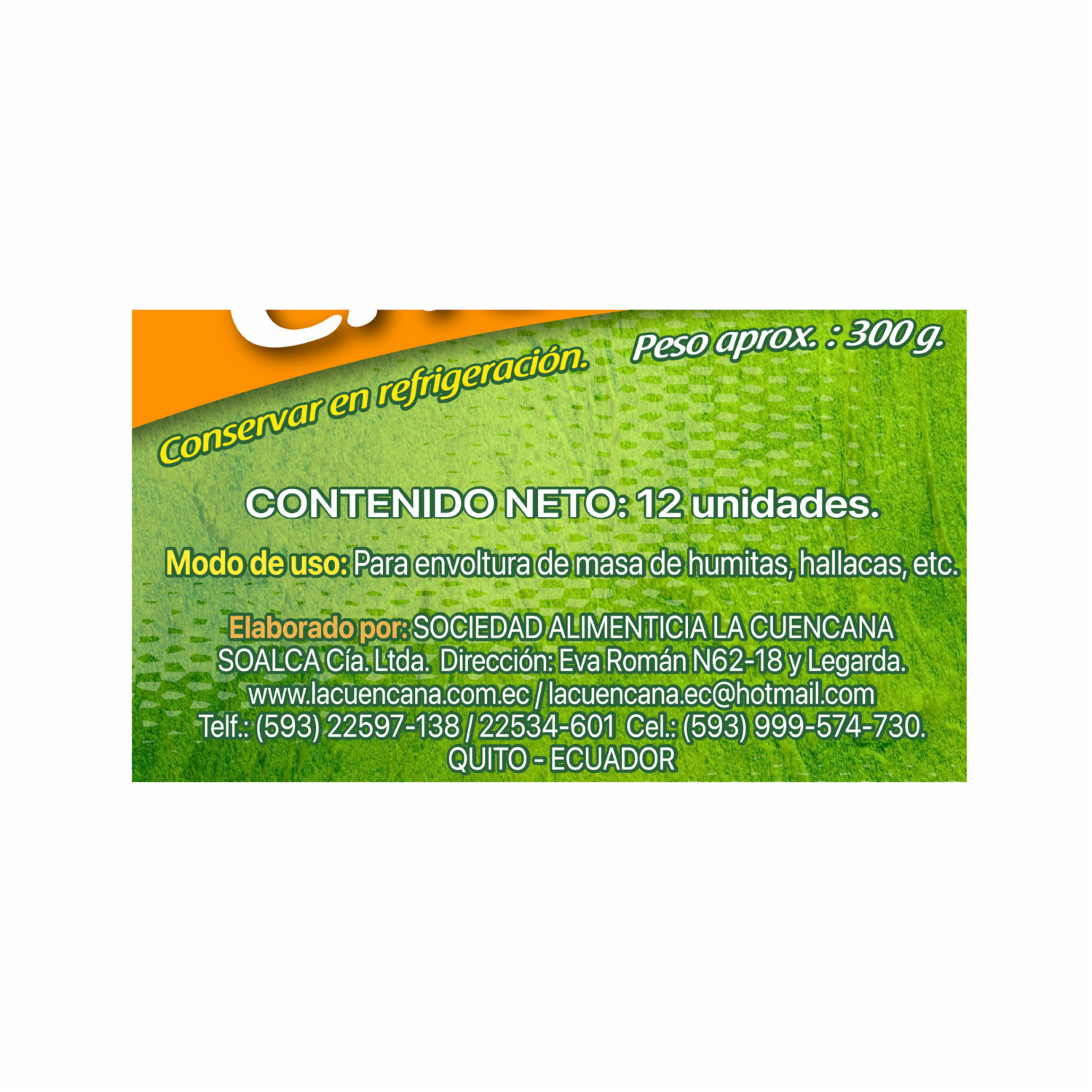 Hojas De Choclo Seleccionadas LA CUENCANA 300 G X 12 U