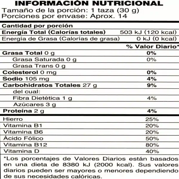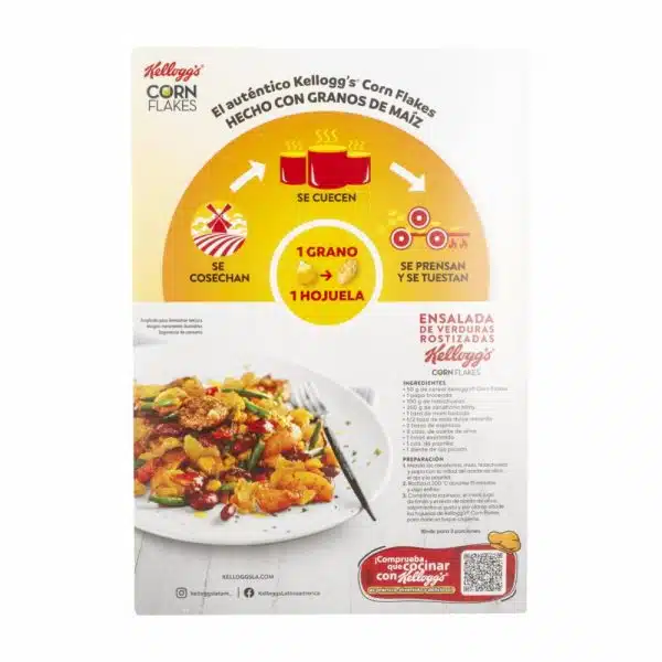 Empieza tu día con energía y sabor con nuestras Hojuelas de Maíz Tostadas con Vitaminas de KELLOGGS! Estas deliciosas hojuelas están hechas con maíz tostado cuidadosamente seleccionado y enriquecidas con vitaminas esenciales para brindarte un desayuno nutritivo y sabroso