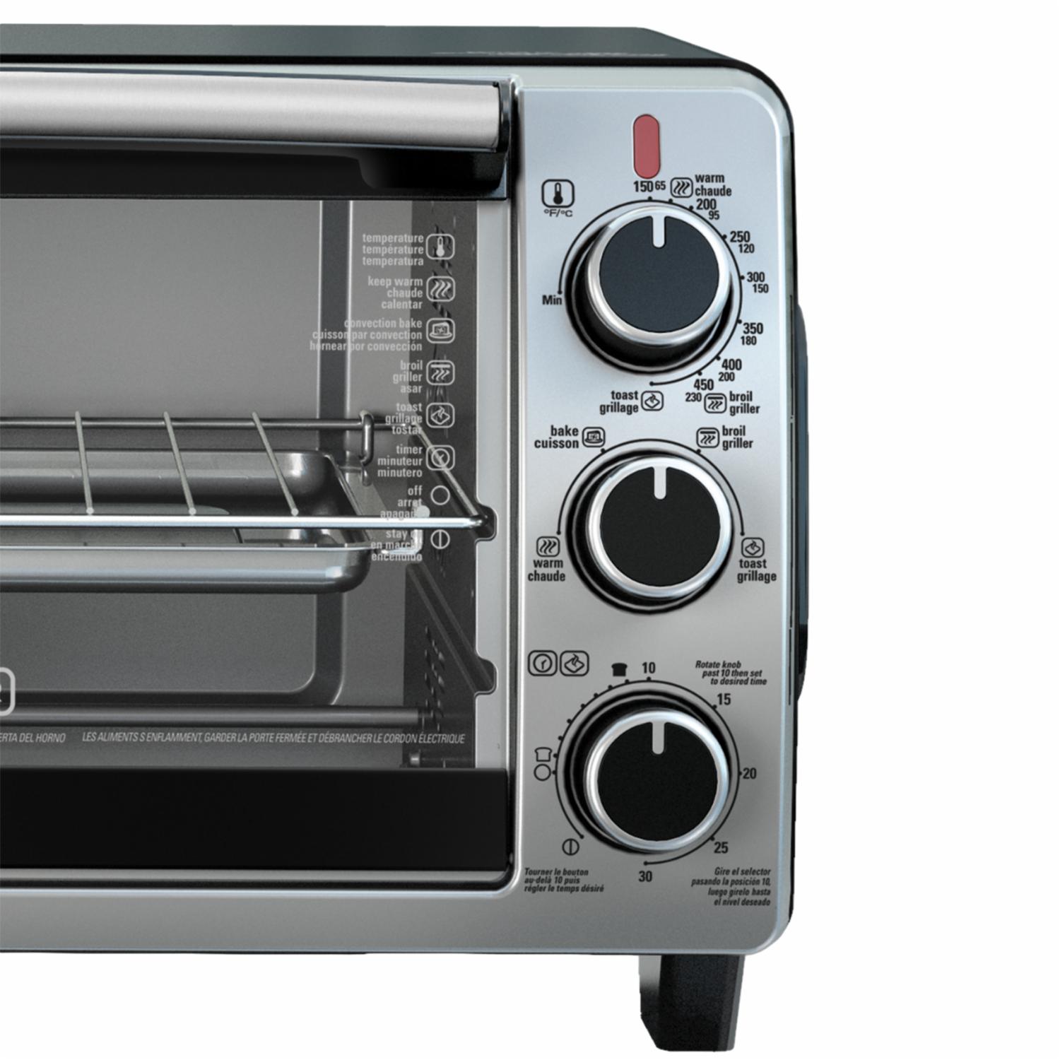 - El horno de Black+Decker de 4 Rebanadas de pan es un horno clásico para su cocina. Sin necesidad de calentar el horno convencional, permite obtener cocina a toda prisa con toda seguridad. La ventana grande y temporizador de cocina permiten cocinar exactamente como lo desees Modelo:TO1950SBD