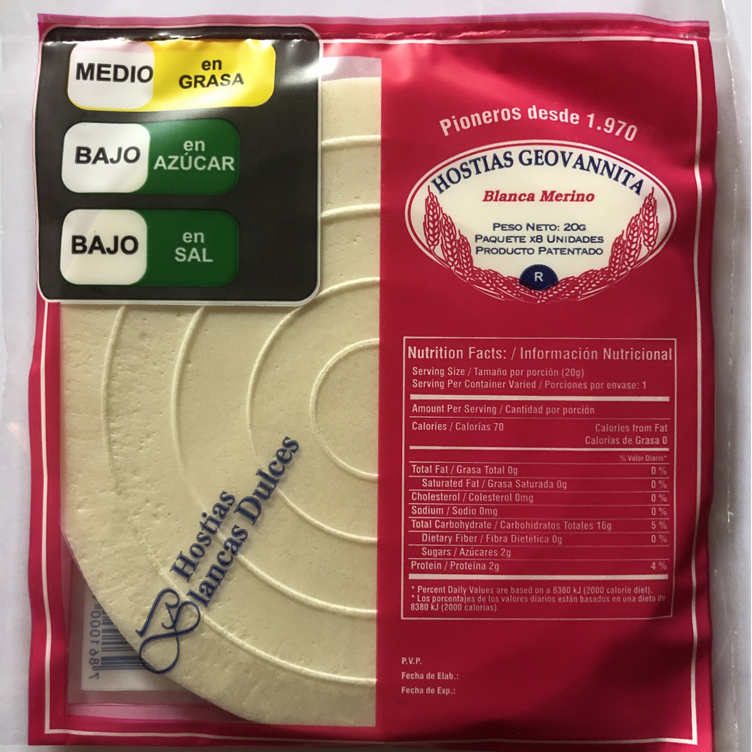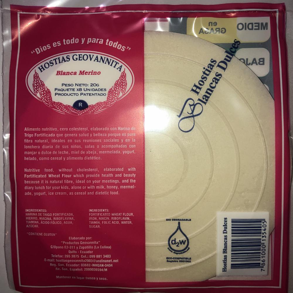 Hostias Blancas Dulces HOSTIAS GEOVANNITA x 8 Uds