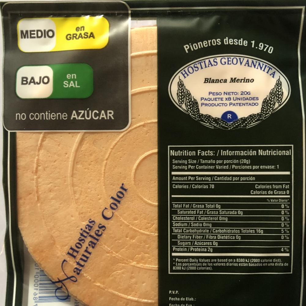 consultando preciosHostias Naturales Color HOSTIAS GEOVANNITA x 8 Uds – HOSTIAS GEOVANNITA. Disponible en nuestros locales. Precio y stock pueden variar según la tienda.