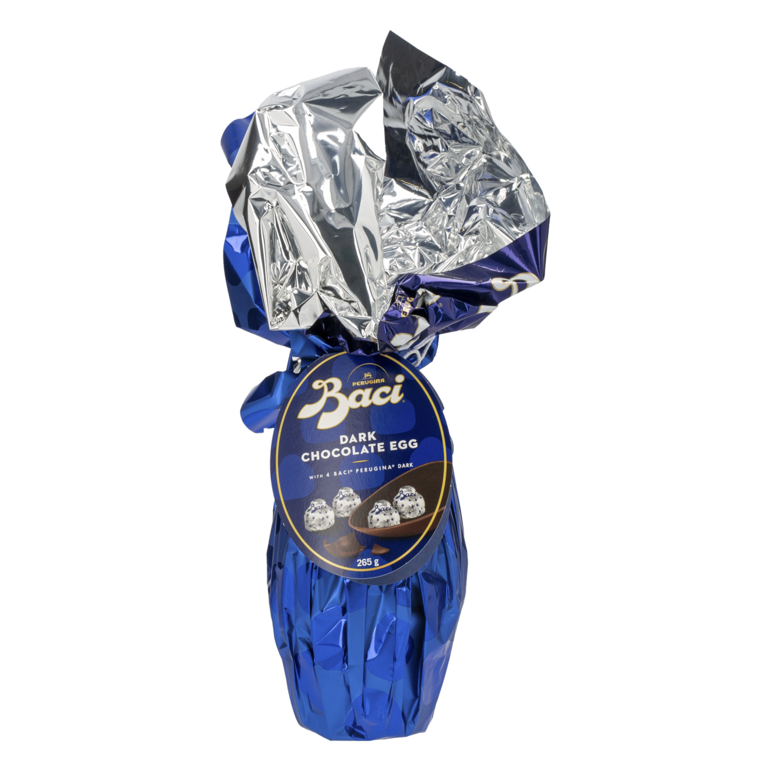 - Delicioso Huevo de Pascua de chocolate, en su interior tiene 4 chocolate negro BACI con relleno de avellanas