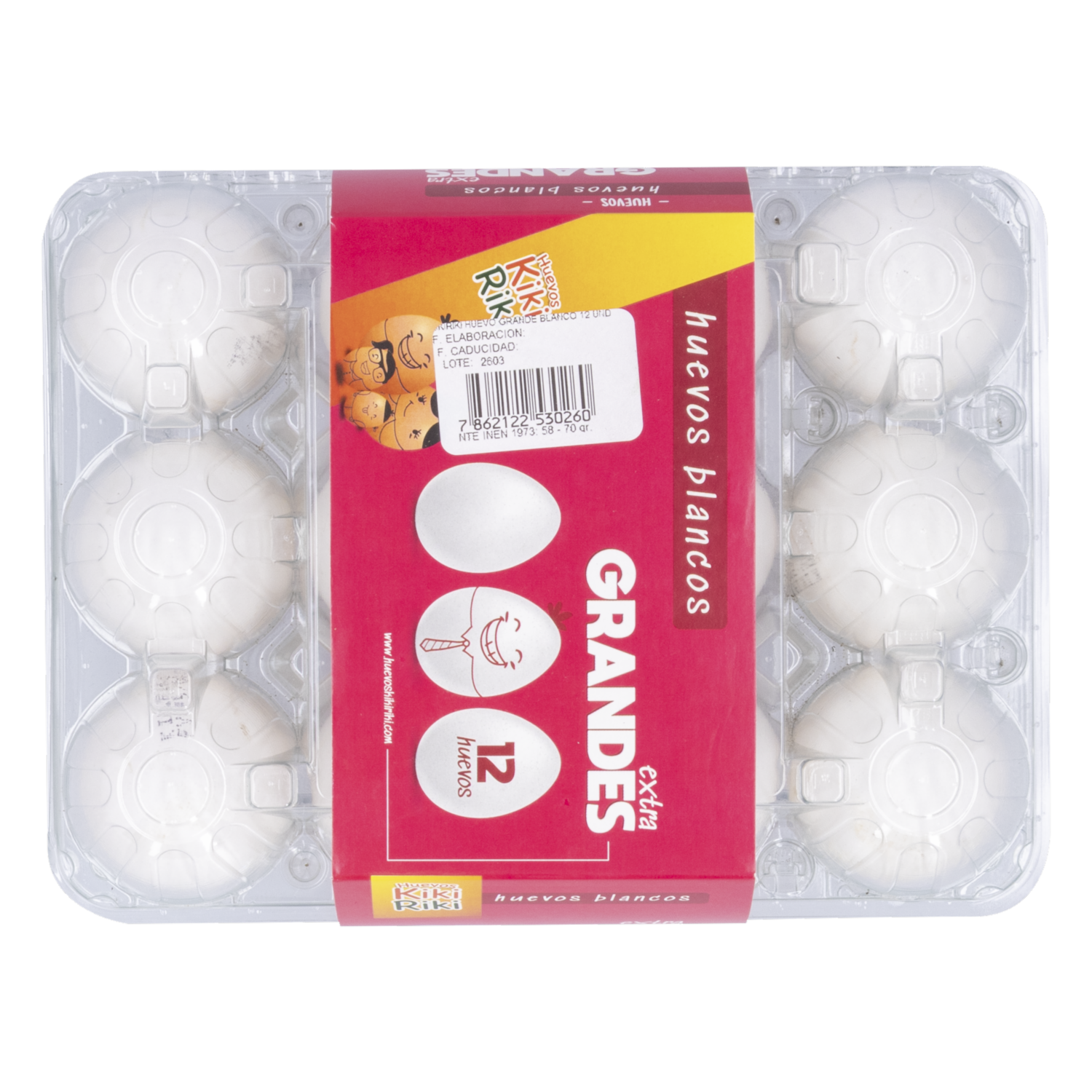 Huevos Blancos Grandes KIKI RIKI X 12 Uds – KIKI RIKI. Disponible en nuestros locales. Precio y stock pueden variar según la tienda.
