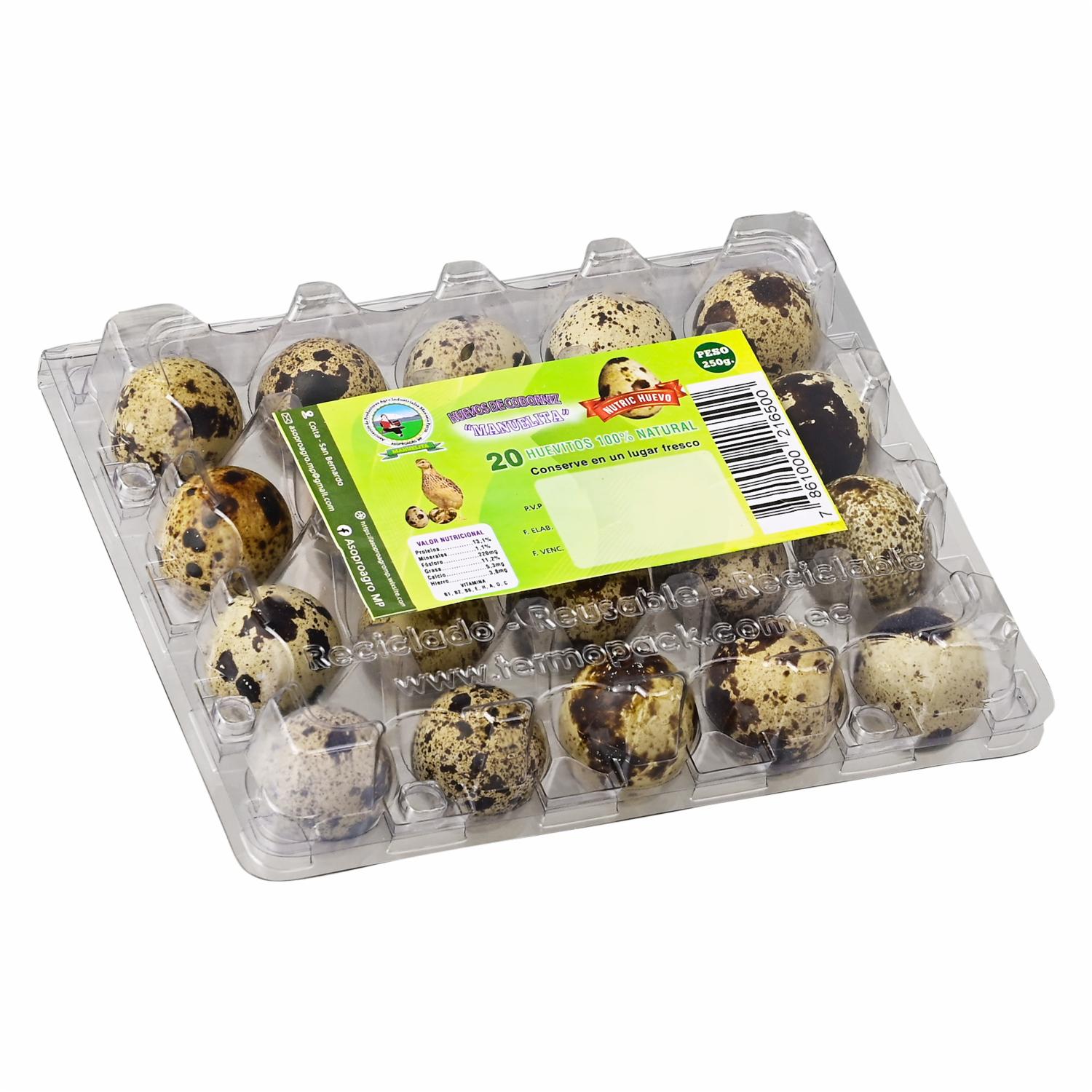 Huevos De Codorníz PRODUCTOS MANUELITA X 20 Uds – PRODUCTOS MANUELITA. Disponible en nuestros locales. Precio y stock pueden variar según la tienda.