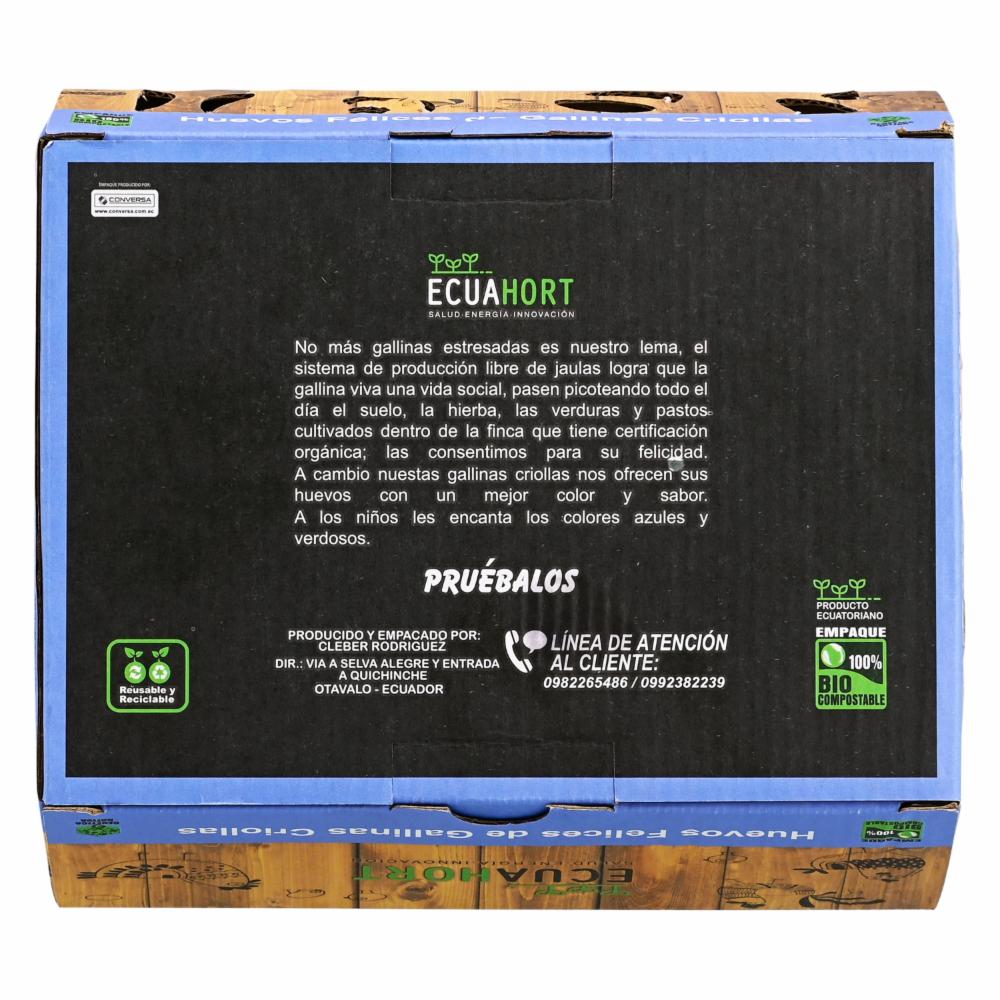 - Huevos Producidos Dentro De La Finca De Ecuahort Y Linda Organic, Las Gallinas Se Alimentas De Una Dieta De Verduras, Pastos, Insectos Que Encuentran Mientras Pastorean. Sus Huevos Son En Un 70 % De Color Azul