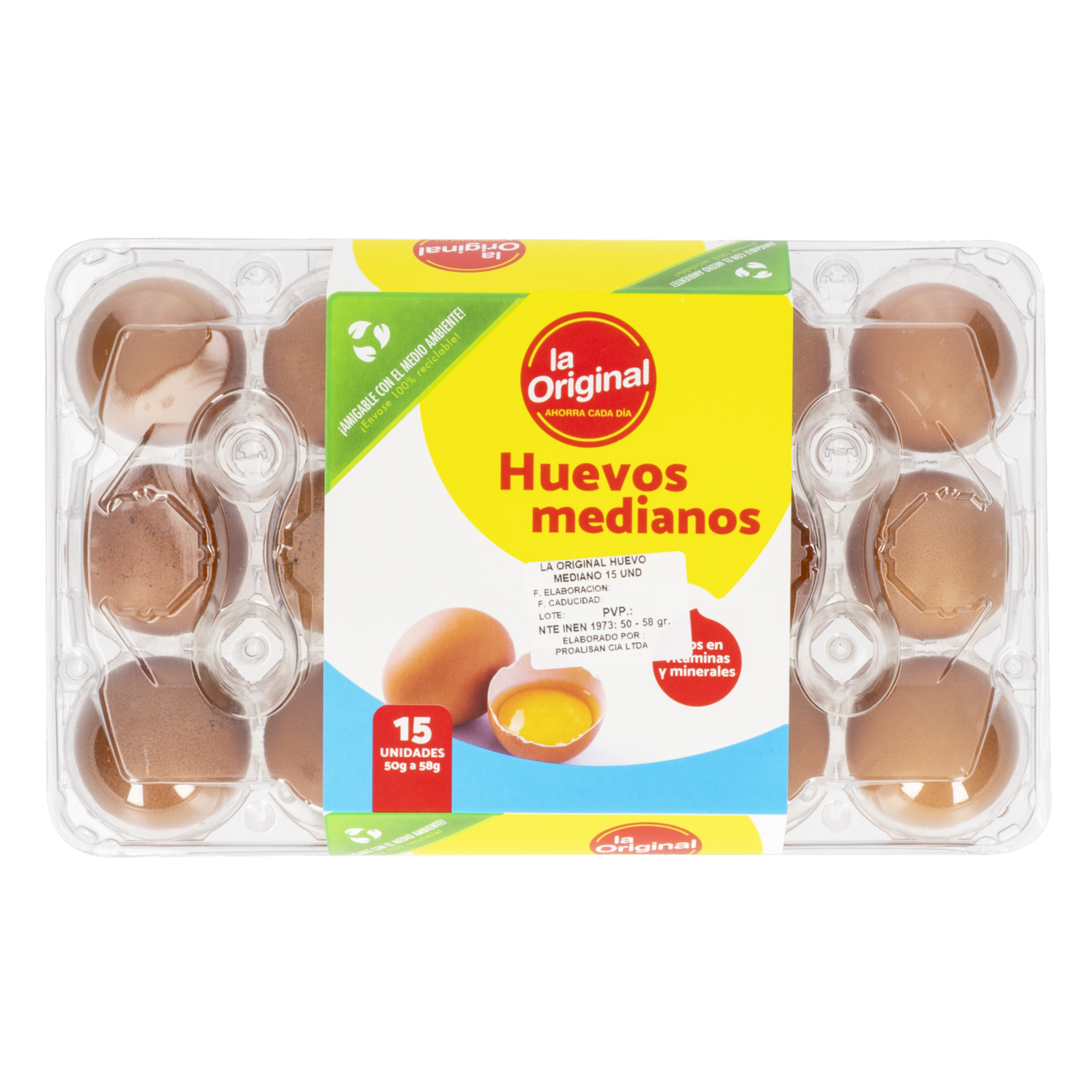 Huevos Medianos LA ORIGINAL X 15 Uds – LA ORIGINAL. Disponible en nuestros locales. Precio y stock pueden variar según la tienda.