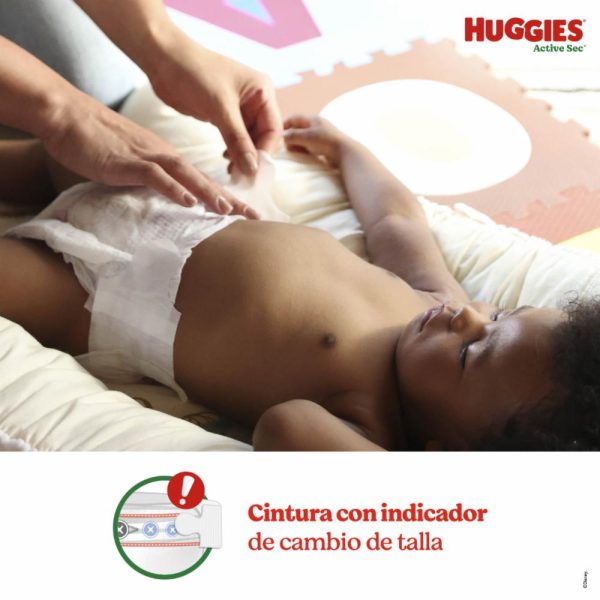 Pañales Huggies® Active Sec® Más Comodidad y Absorción, Día & Noche. Tiene canales en X y un sistema de ajuste flexible que se adapta por completo a los movimientos de tu bebé. Dos veces más protección nocturna. Máxima flexibilidad y absorción. Indicadores de cambio de talla. Calidad Huggies, comodidad y tecnología unen sus fuerzas para ofrecer a tu bebé tranquilidad y seguridad en todo momento. Huggies, la marca en la que confías para que tu bebé crezca sano y libre