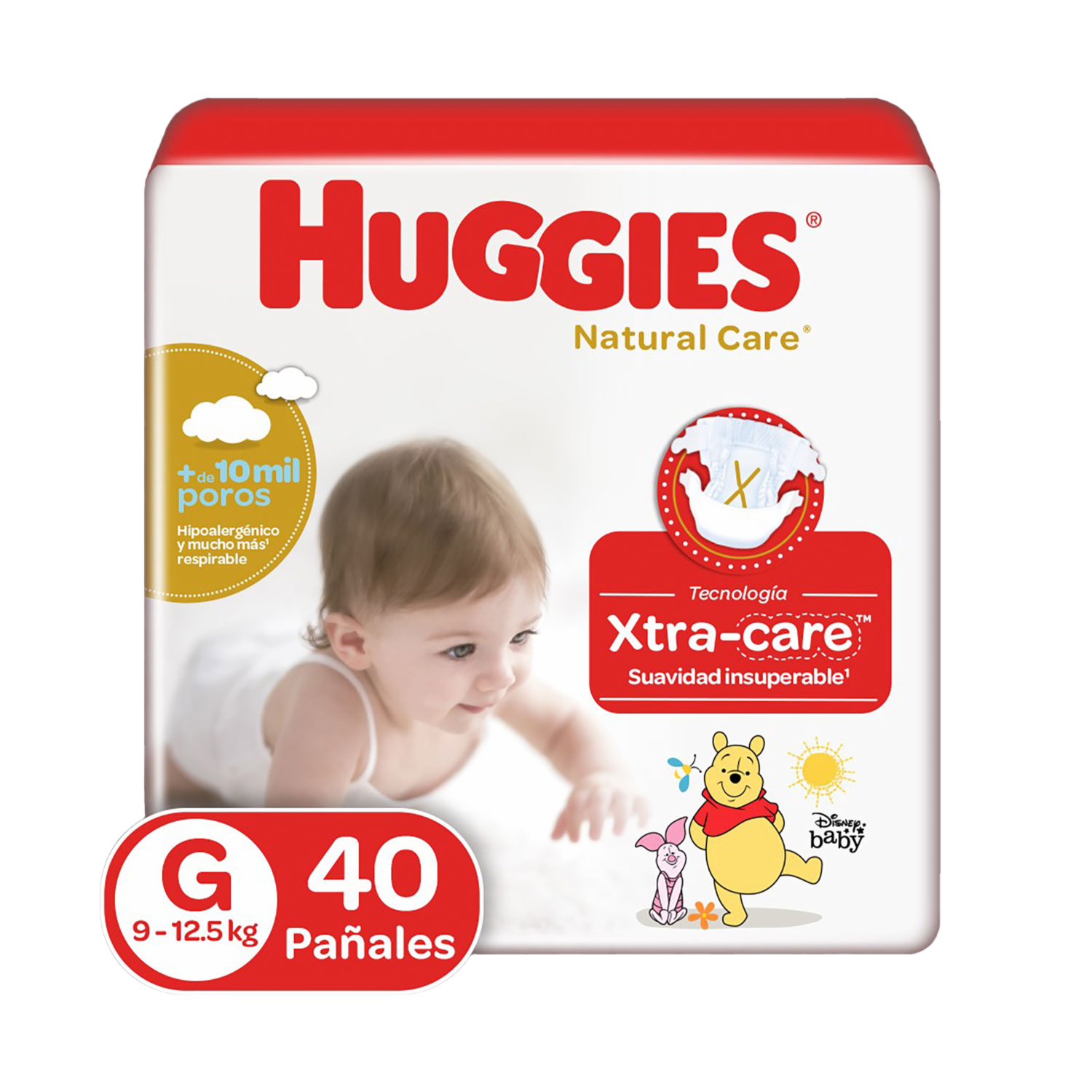- Pañales Huggies Natural Care Pants, con ajuste perfecto que suben como ropita interior. Tienen 10.000 poros respirables y son tan suaves que ayudan a mantener la piel de tu bebé sana, protegida y súper suavecita